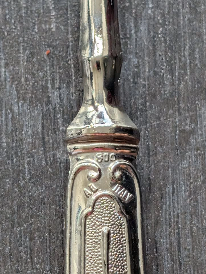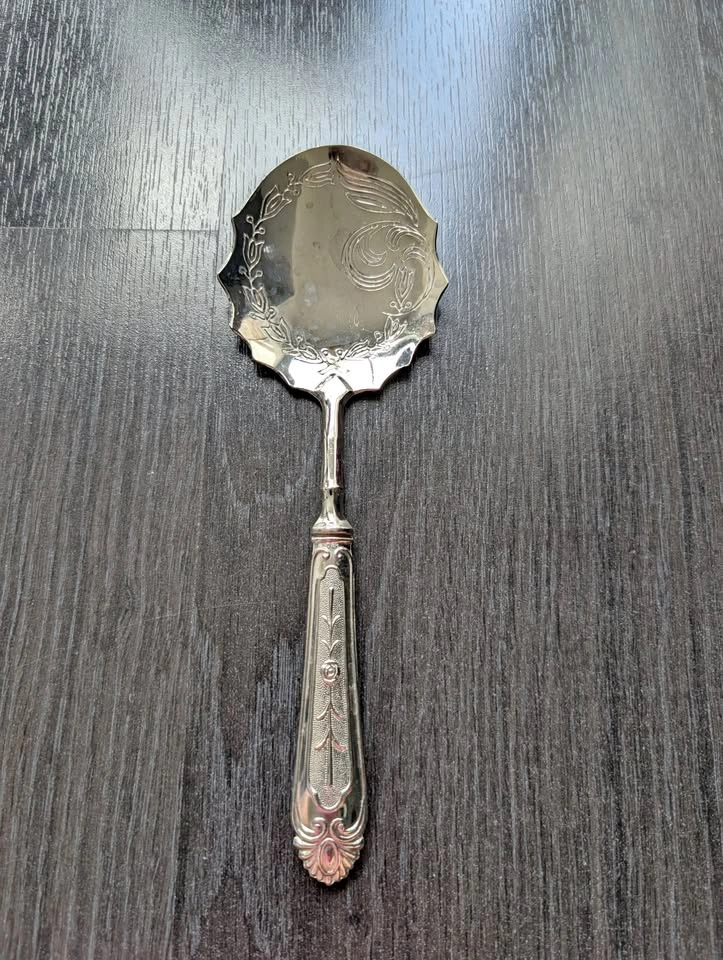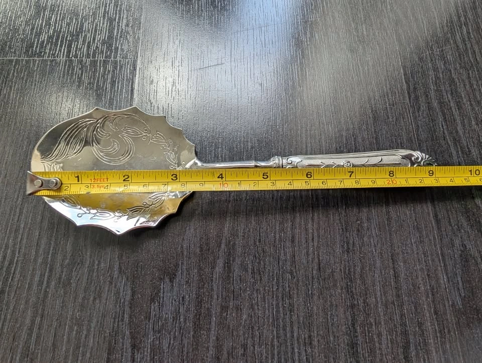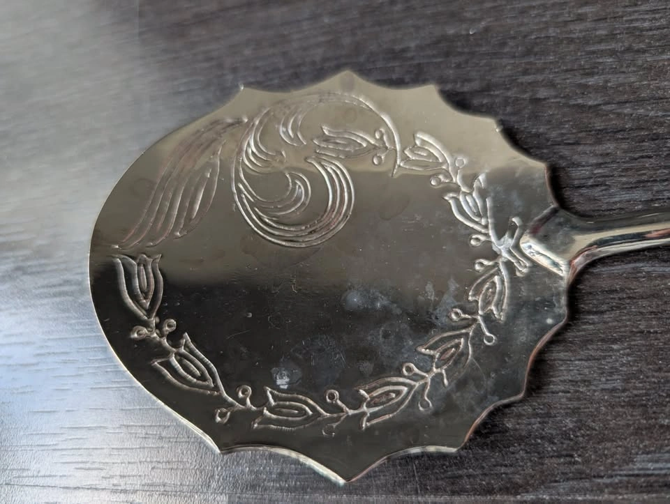 This serving piece has a floral engraved design and the mark 800. Please note: this item has a lot of wear from use and age. Please see my other adds for more 800 Silver serveware.