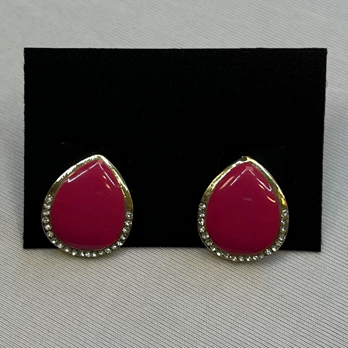 Vintage 90s Pink Enamel Gold Tone Teardrop Earrings Rhinestones