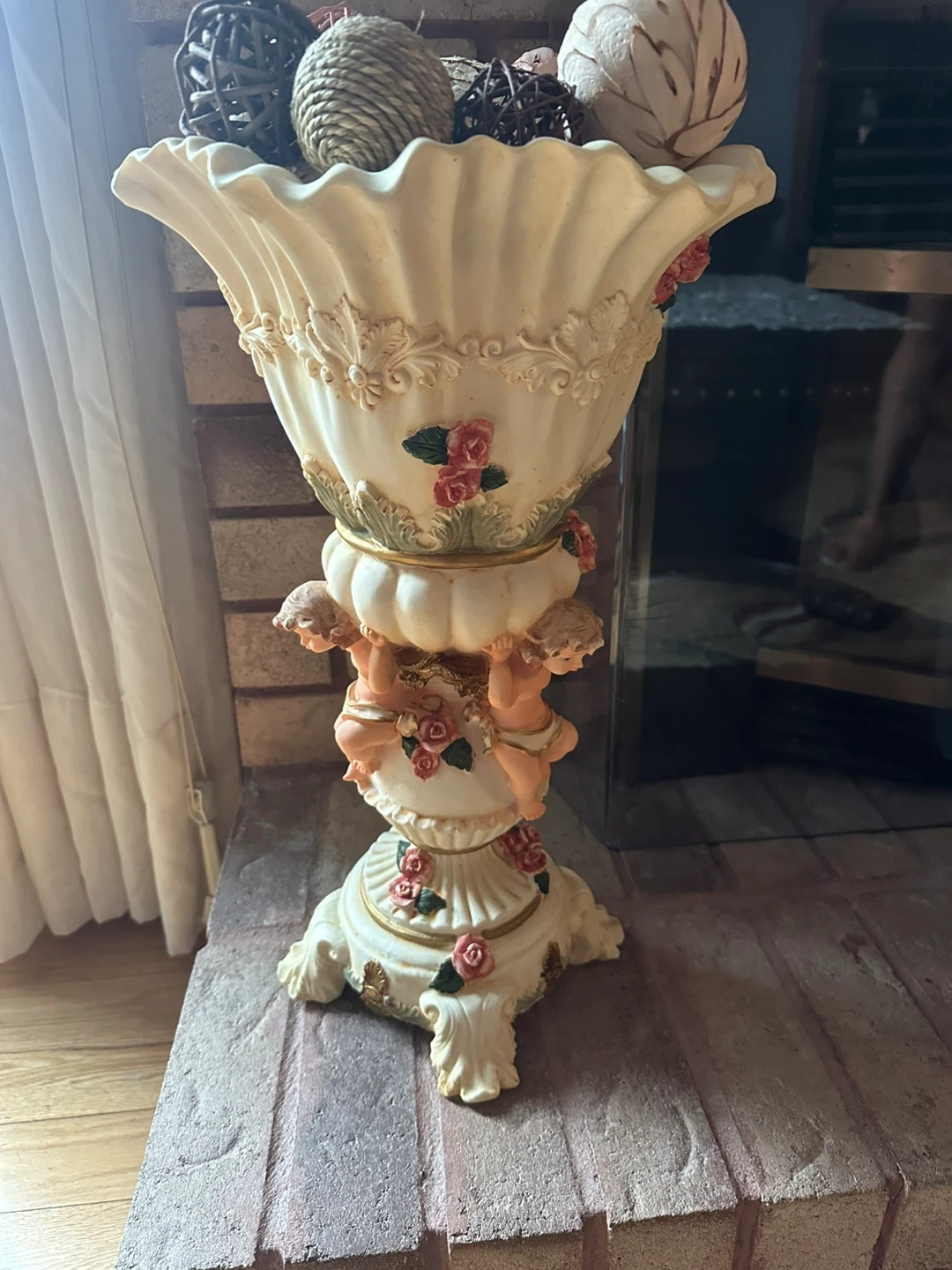 Selling a beautiful vintage vase featuring cherubic angels and delicate rose accents! It's a charming piece that adds a touch of classic elegance to any room. Perfect for displaying flowers or as a standalone decorative item