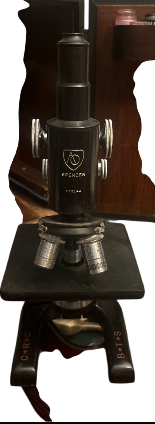 Selling a vintage AO Spencer microscope. It comes with its original wooden case and some accessories. A great piece for collectors or anyone interested in vintage scientific equipment! 14.5 x 9 x 8.5 Excellent working condition - pet and smoke free home Parkside Drive south of Bloor and keele station area