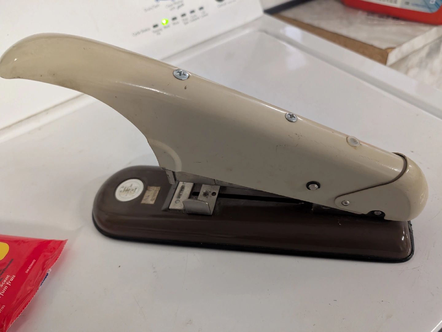 Selling a vintage Apsco A9 heavy duty stapler. It's a cool piece of office history! It loads Apsco HD staples and was made in Toronto, Ontario, Canada. It has some wear and tear, but it's still a functional and interesting item