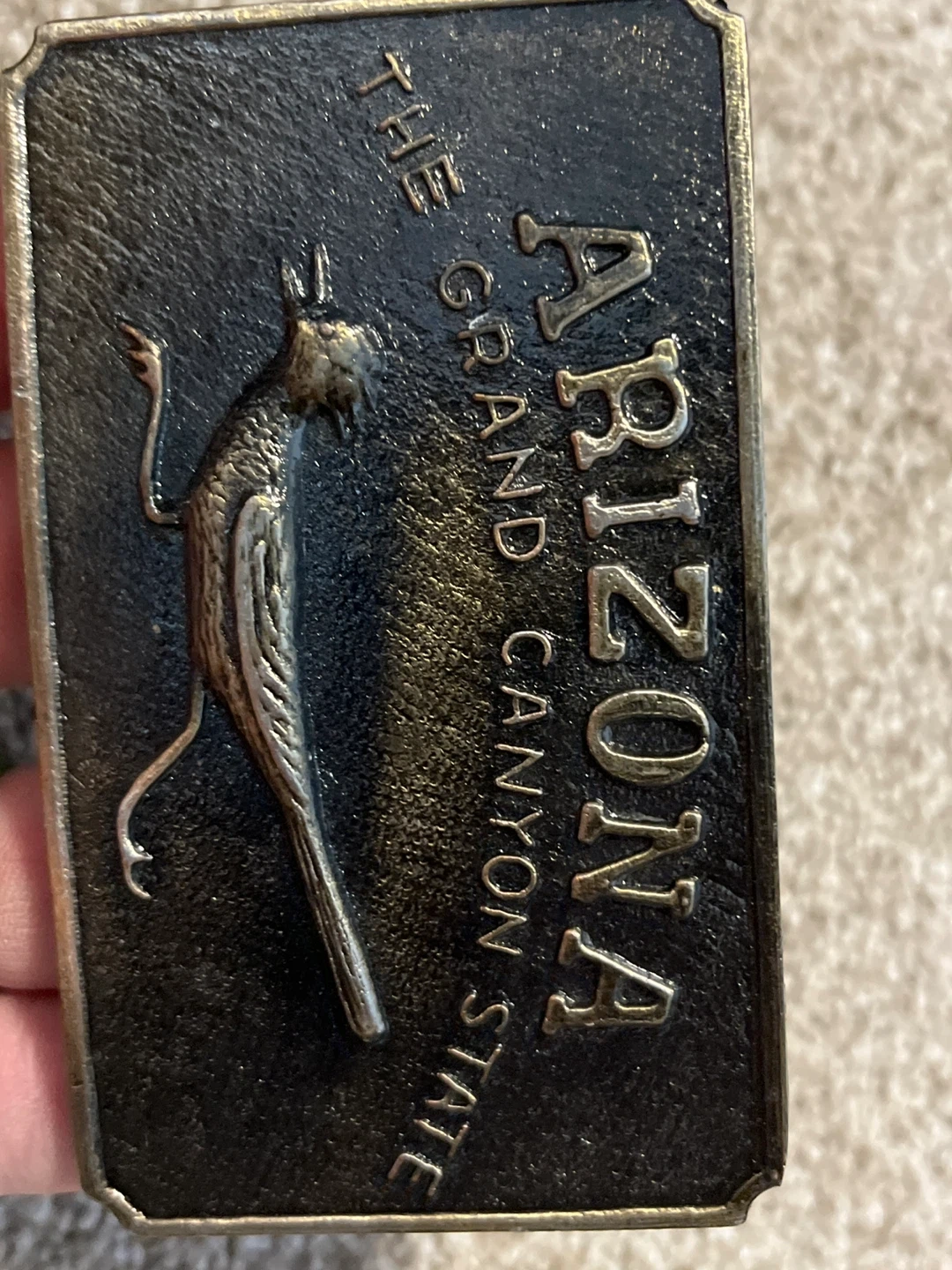 Selling a vintage belt buckle featuring Arizona and the Grand Canyon State.