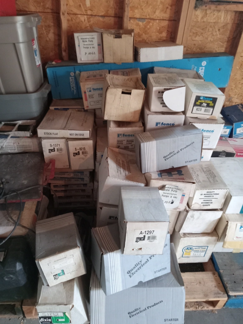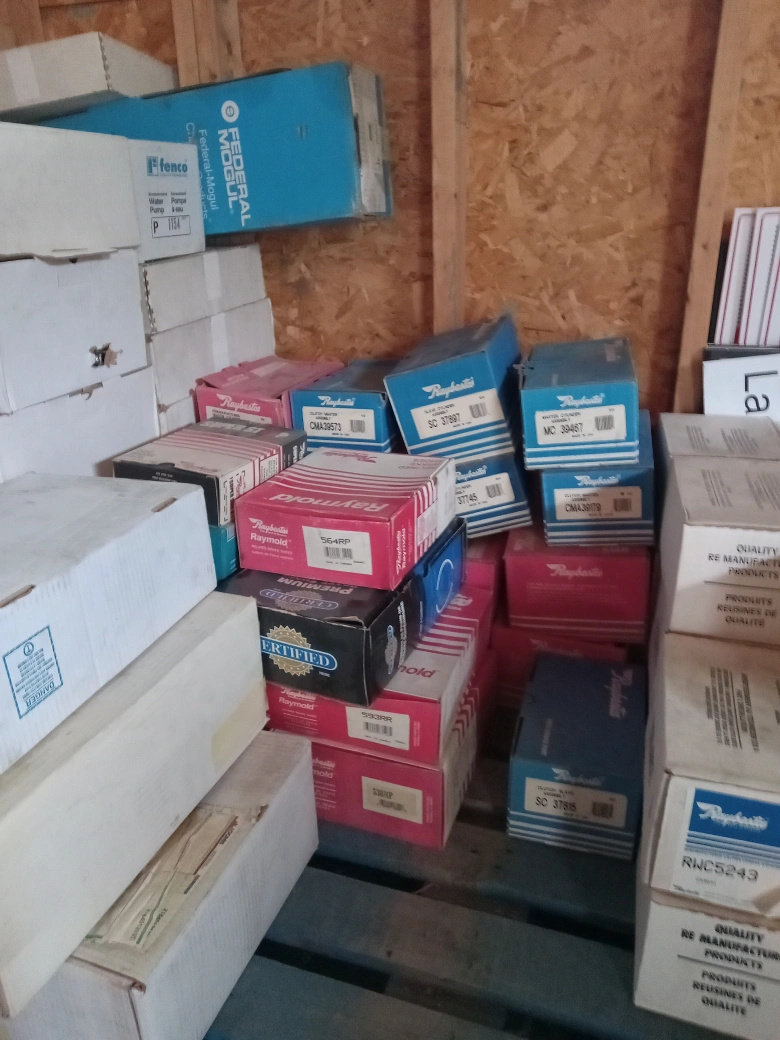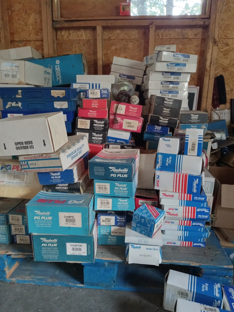 large assortment of vintage auto parts from . plugs and wires, Purolator air, oil, fuel filters hundreds of each. Raybestos brakes , rotors, pads. water pumps , master cylinders, clutch cables . starters , trailer accessories, shocks, gages, headlights, bulbs , Hoses Belts, and so much more.
