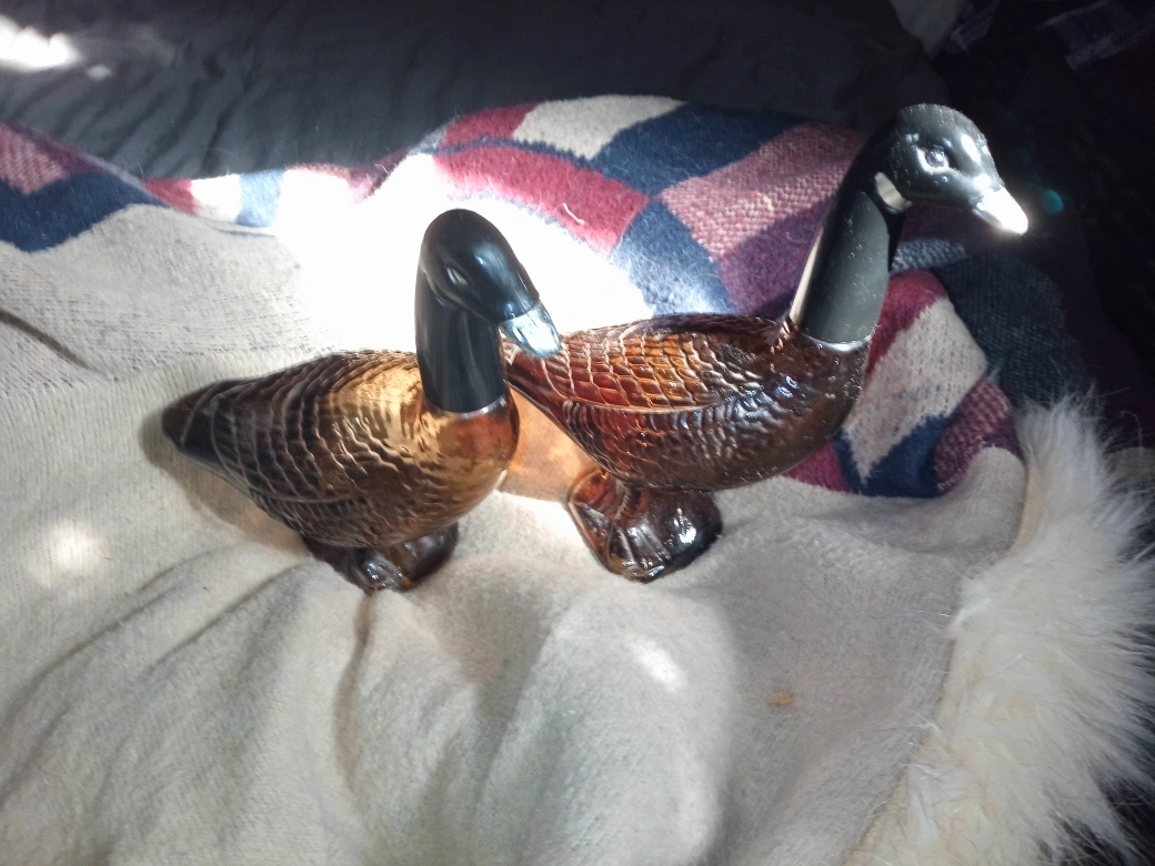 These are a pair of vintage avon glass geese mens after shave figurines. They would be a lovely addition to any collection or as a decorative piece in your home, $15 each