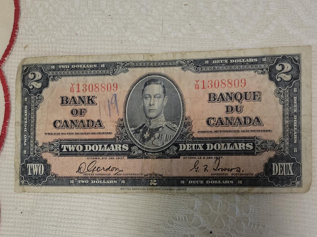 Selling a vintage Bank of Canada two dollar bill. It's from Ottawa, January 2nd, 1937. A cool piece of Canadian history!