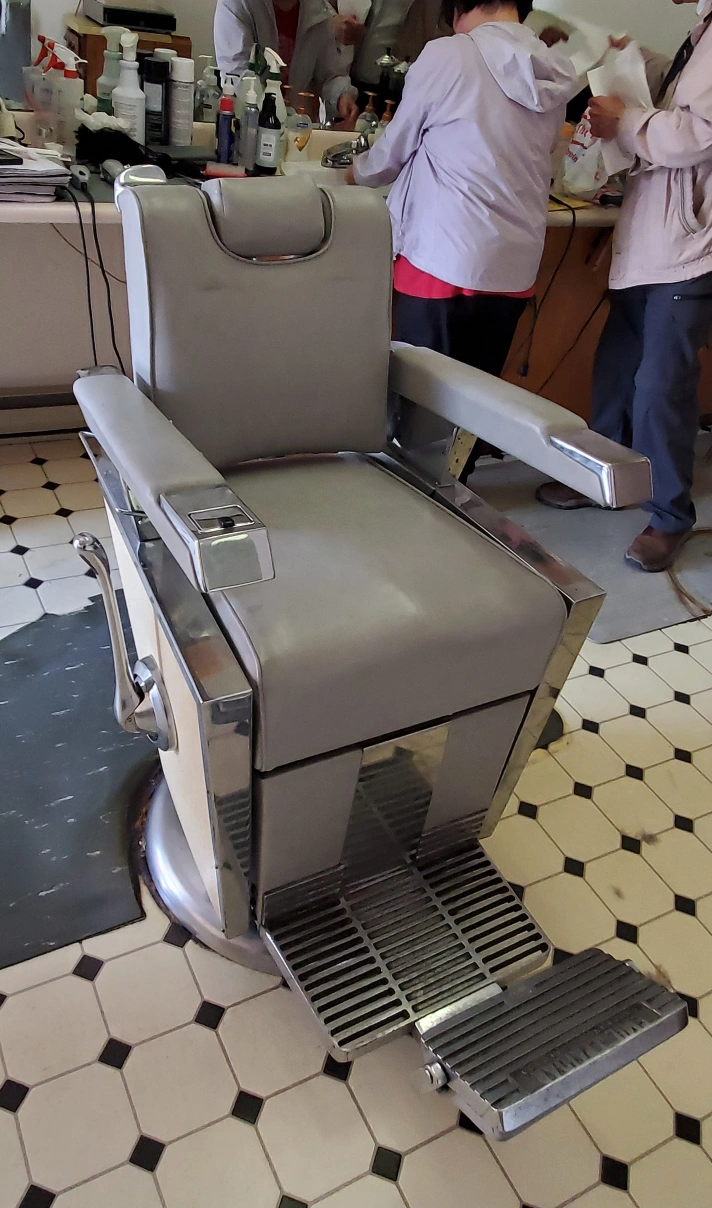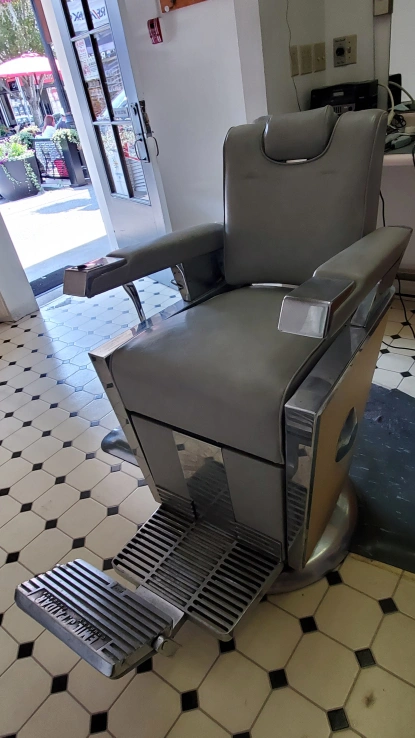 Selling a vintage barber chair in grey. It's a classic piece that would look great in a barbershop or as a unique statement piece! It has a footrest and armrests for added comfort. The chair shows small signs of wear, which adds to its vintage charm! Comes with Retractable head-rest, Built-in Ash Tray! Everything is in excellent condition! Will deliver!