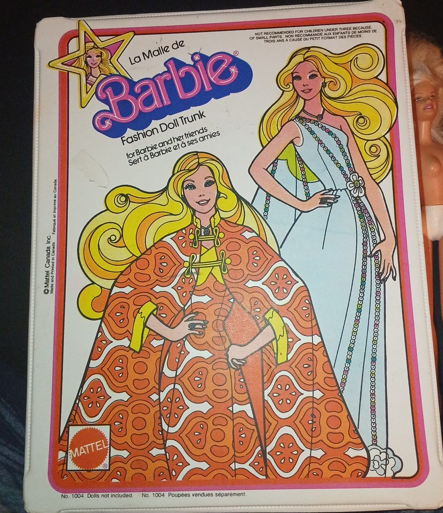 I'm not sure what year the box is from. Likely 60s or 70s. The Barbie is from 1966, and isn't broken anywhere but has rather matted hair; will sell her for 20 dollars alone or 10 if with the box Box has been used for 3 generations. Despite this its in mostly good condition aside from some rips and bending inside on the cardboard will show inside if asked no clothes nor accesories included