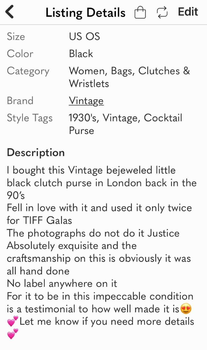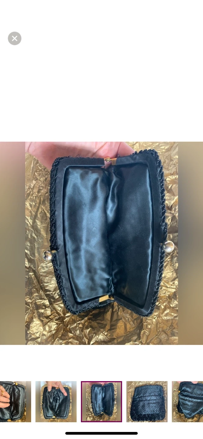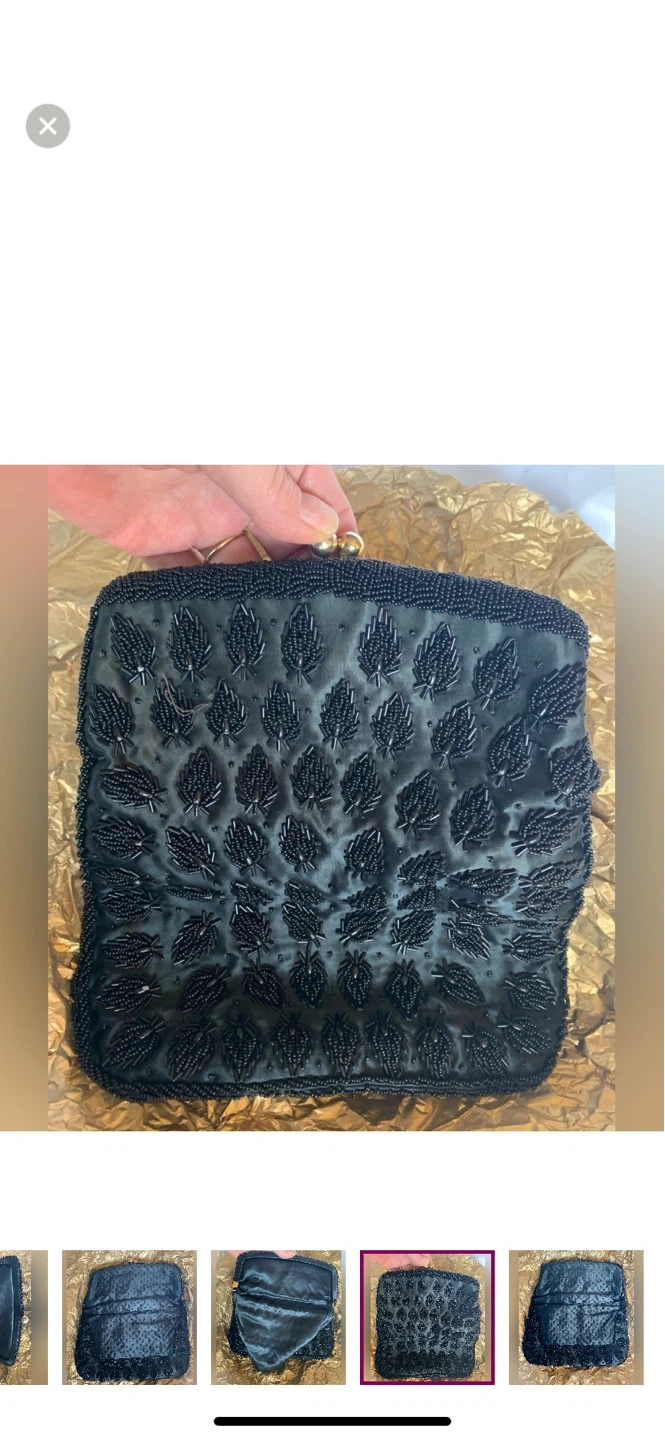 Selling a vintage beaded evening clutch from the 1930’s It's in great condition and perfect for a night out. The bag has a black satin interior and a clasp closure. The exterior is covered in intricate beading. It's a stylish and unique accessory! Originally paid $500. Please look to photos for complete description.