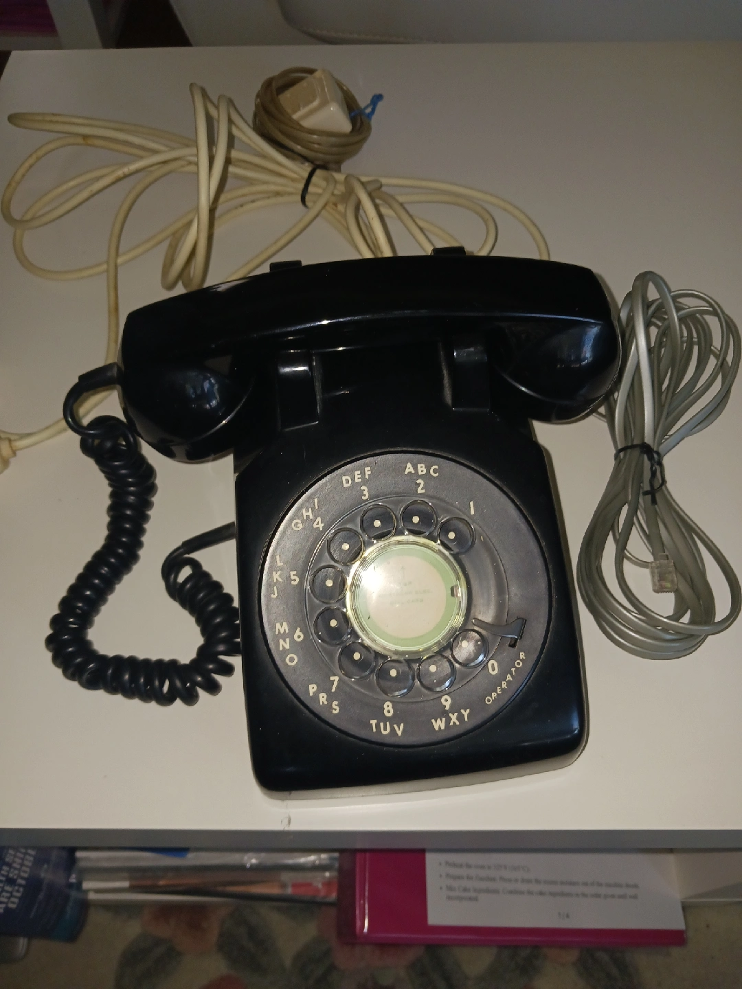 Selling a classic heavy, black rotary dial telephone. It's in good condition for its age and would be a great addition to any vintage collection or as a unique decor piece. Comes with all the cords shown. Pick up on Raquette St between Portage and Allard.