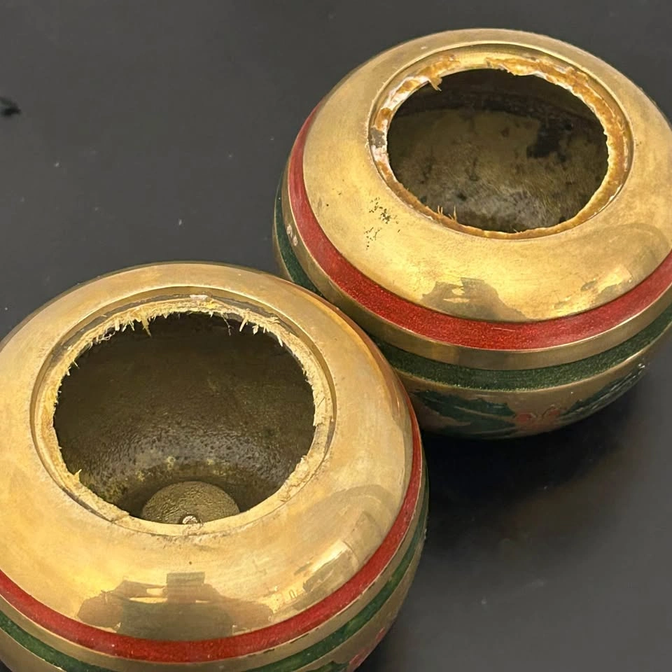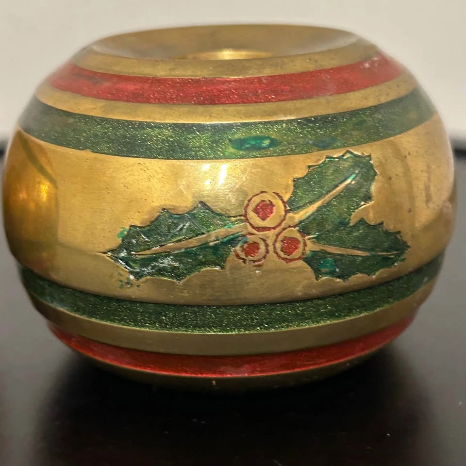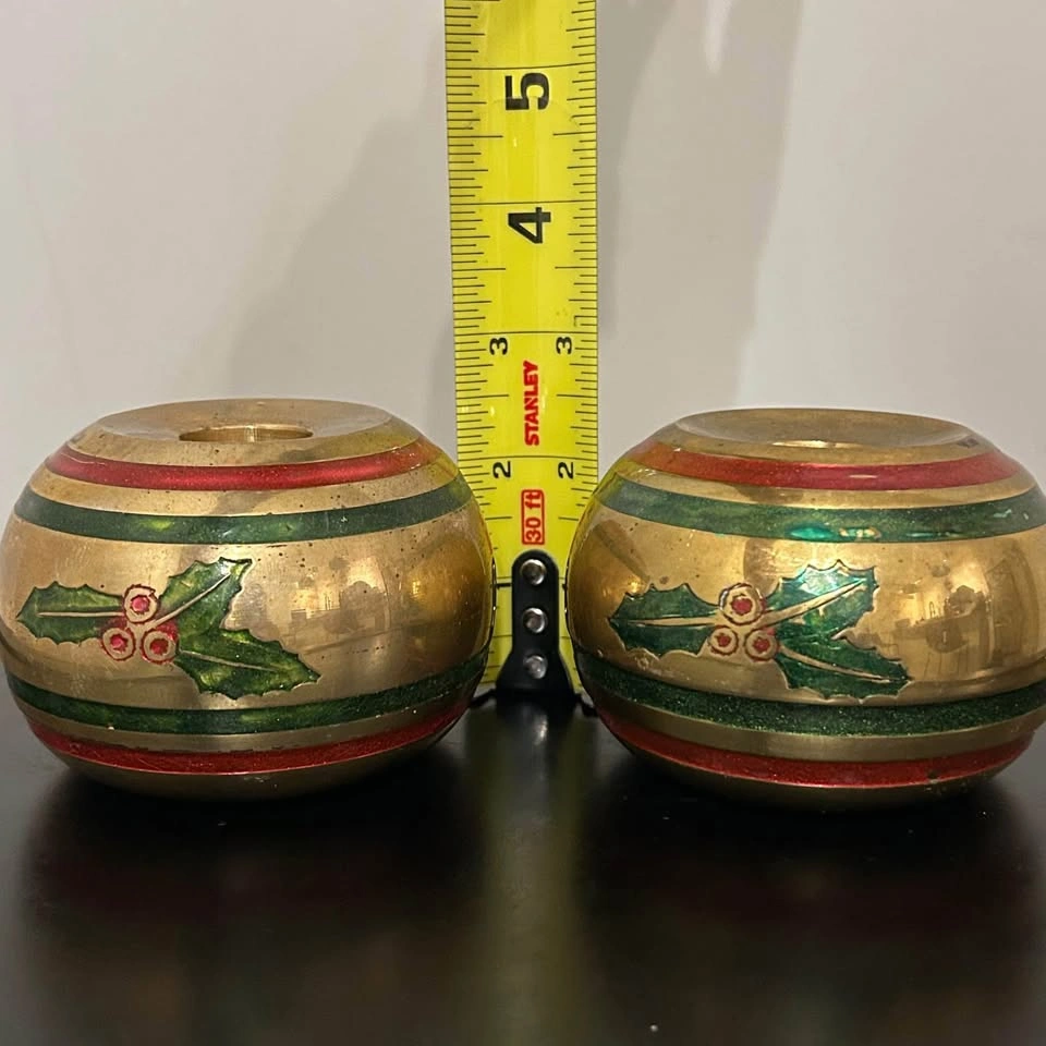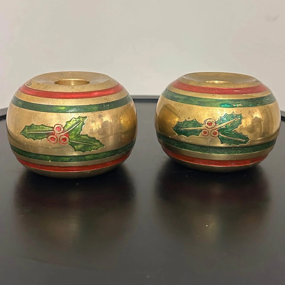 Vintage Brass Christmas Candle Holders – Hand Painted (Pair)
