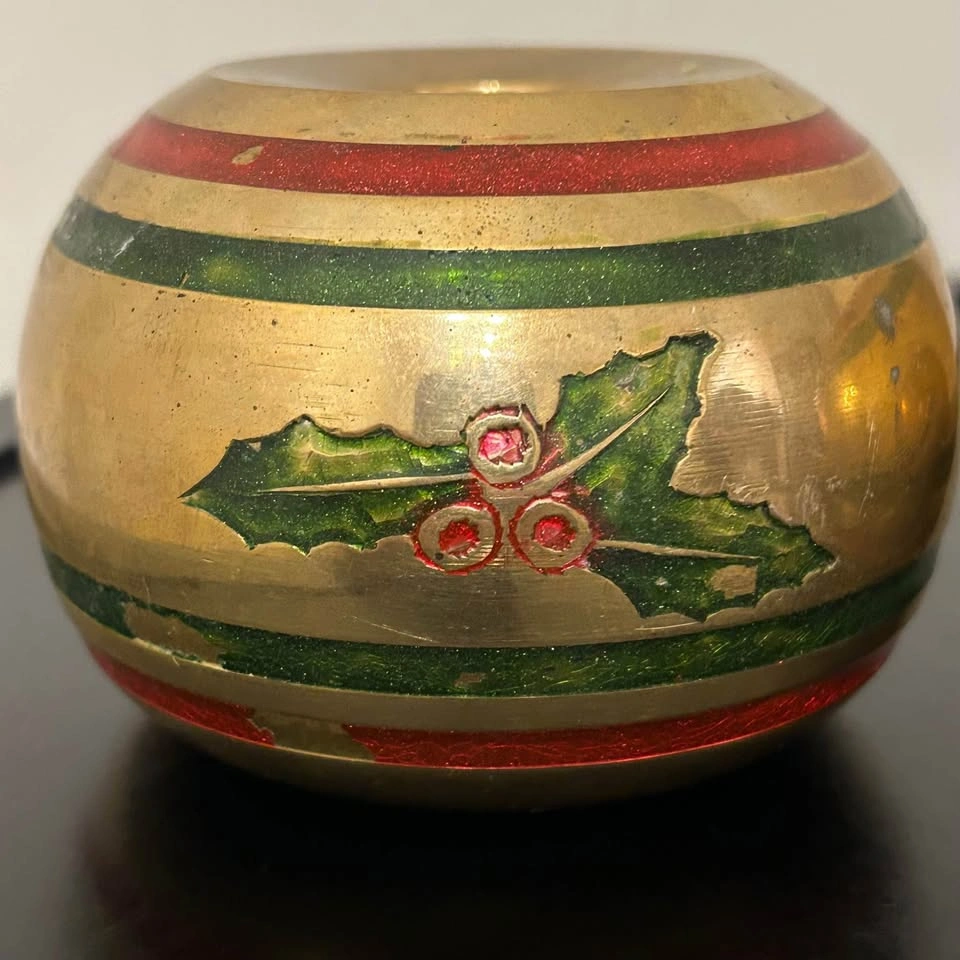 Festive vintage pair of brass candle holders with hand-painted holly and berry decorations in red and green. Classic mid-century holiday design with warm patina and lovely vintage charm. Both show some wear and paint loss consistent with age. Sold as a pair. Perfect for holiday décor, Christmas table settings, or as collectible vintage brass pieces. Pick up: Seton area, Calgary. See also my other lots. Open to your questions and suggestions. If necessary, I provide additional photos. These are not new things, so please look carefully at the photos and videos. Sizes are submitted on request and also using a tape measure in the photo.