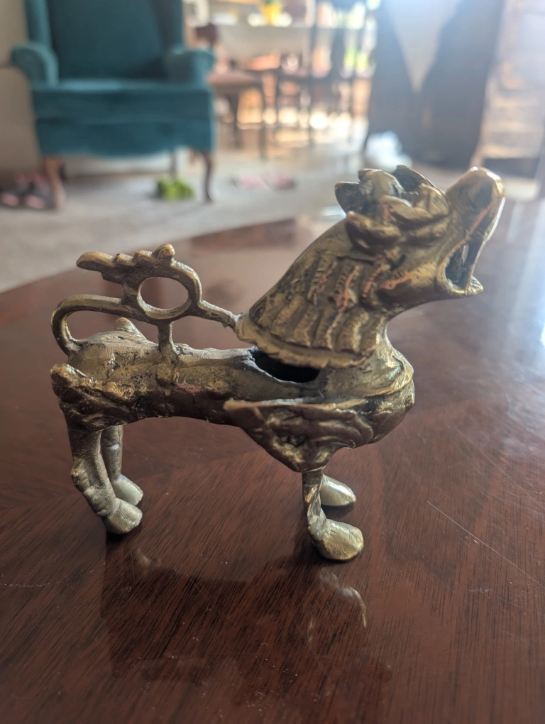 Unique vintage brass statue featuring a dragon design! It's a lovely piece to add to your decor or collection. This statue is in good condition and ready for a new home