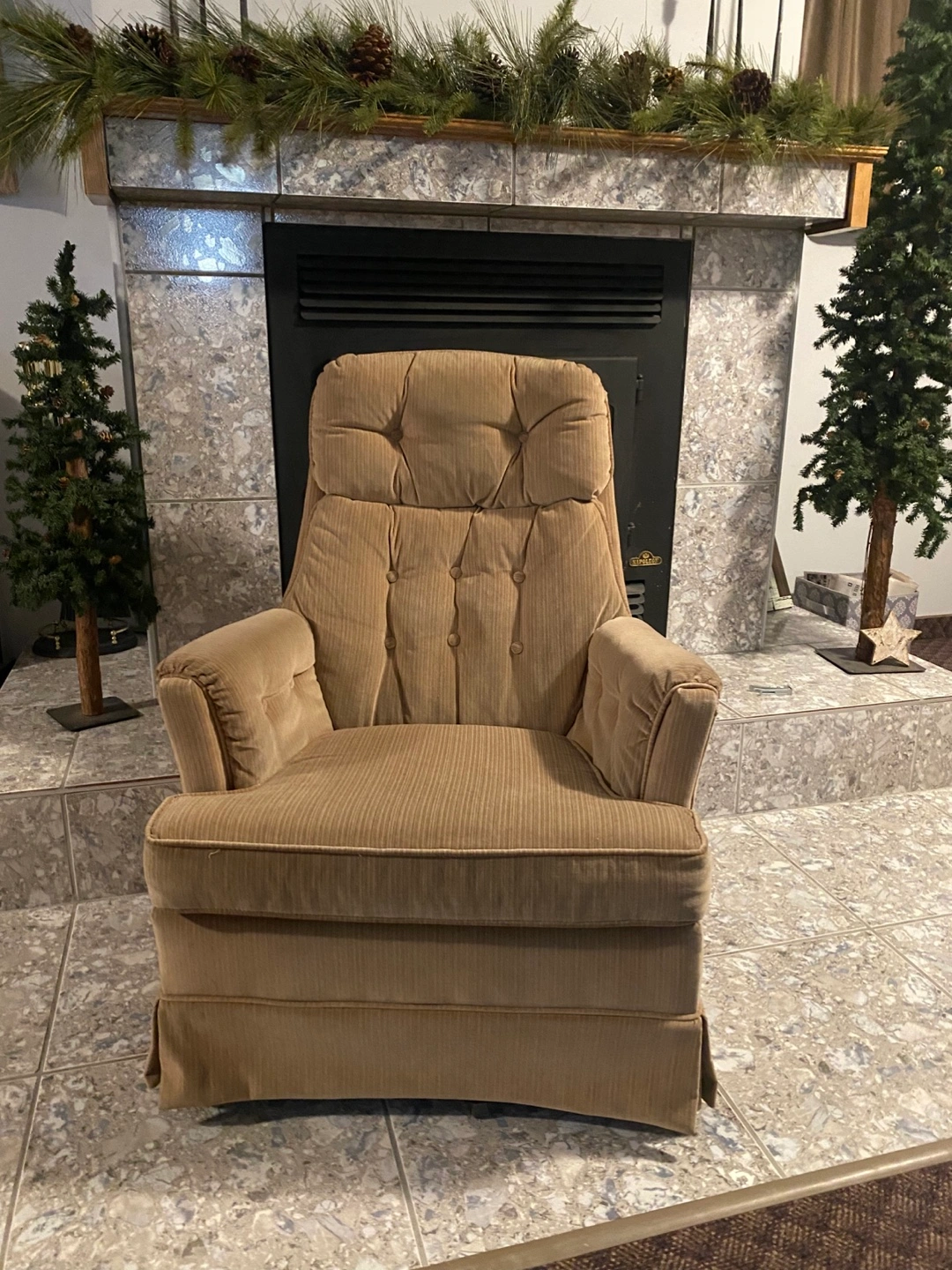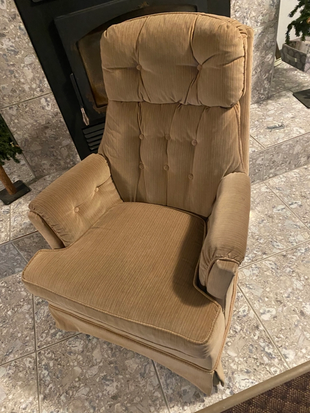 Beige Vintage High back. Button tufting. Swivel base. Rocker function. From a smoke free home Pick up in Steinbach