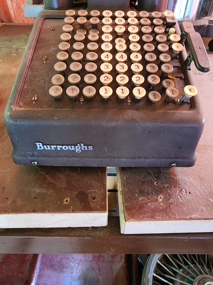 Selling a vintage Burroughs adding machine. It shows signs of wear and age, but it is still a unique piece. Great for collectors or as a decorative item no cord. open to offers.