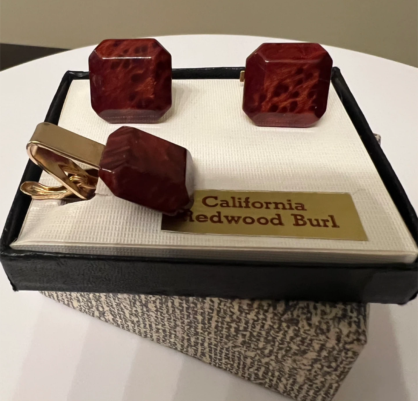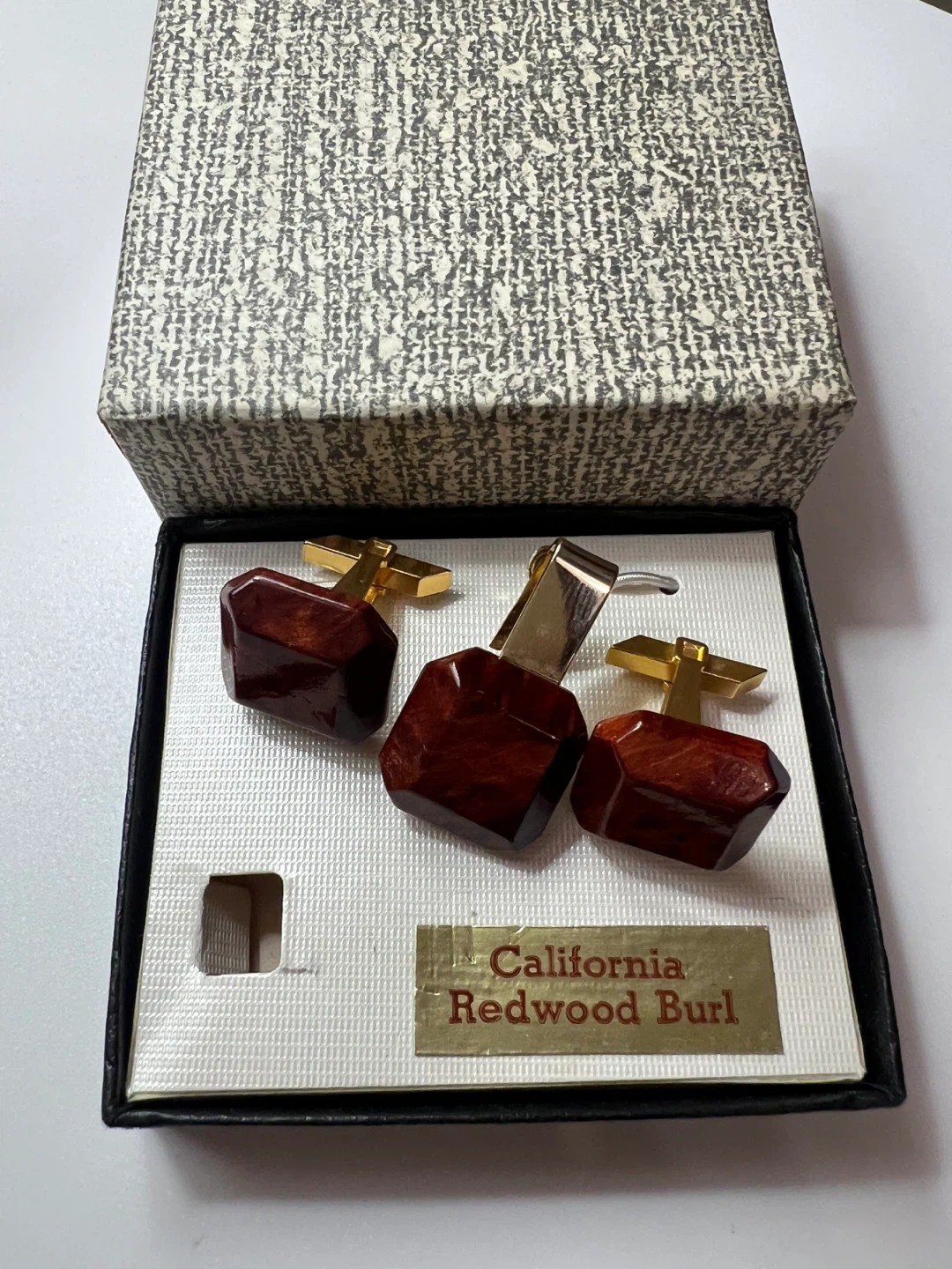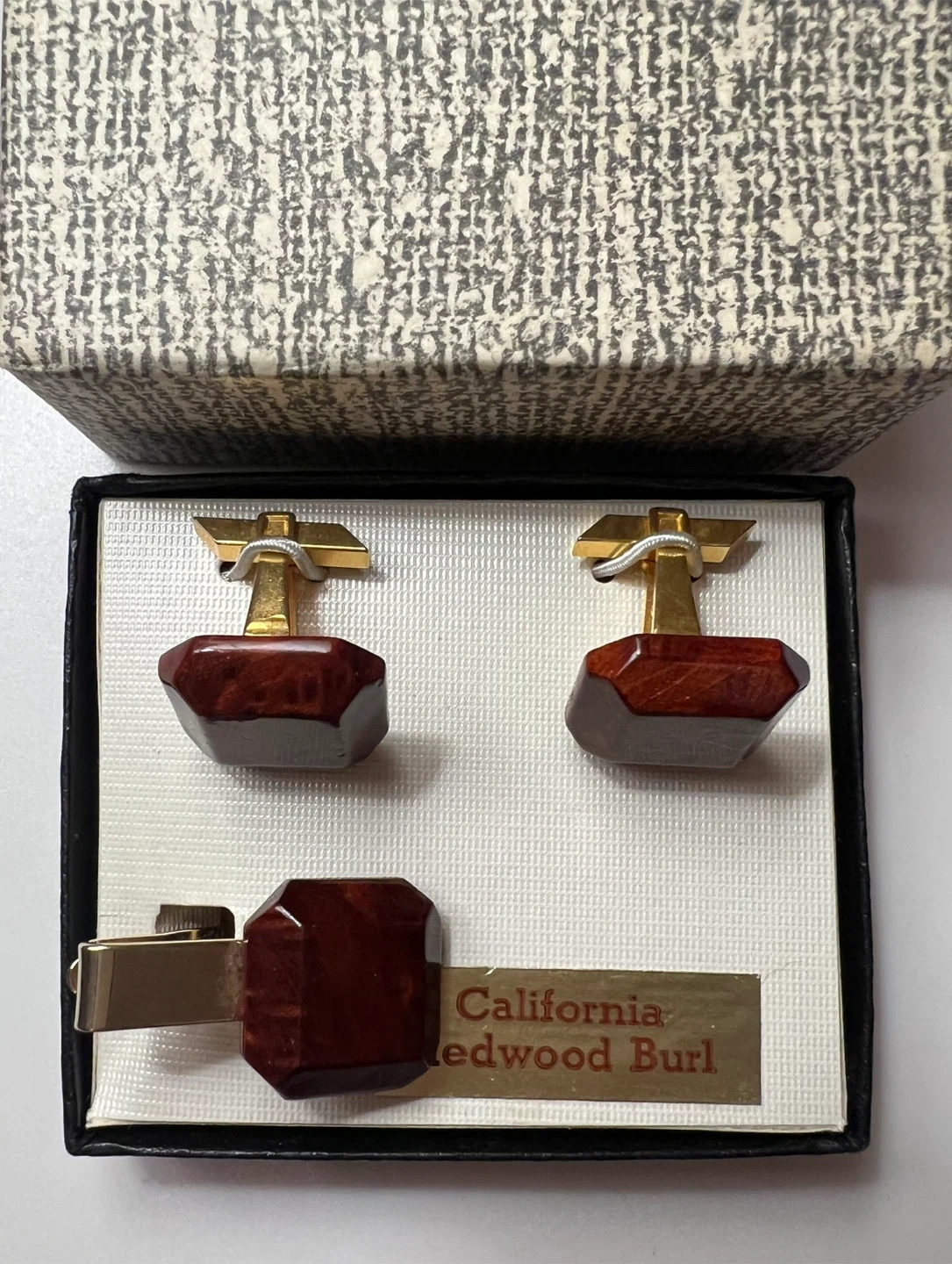 A handsome set of cufflinks and a tie clip, crafted from California Redwood Burl! They come in their original box, making them a great gift or a stylish addition to your own collection Unique Like new condition Love of vintage? Wear it with pride!! Asking $30 Interested? Message me and please check my other listings…