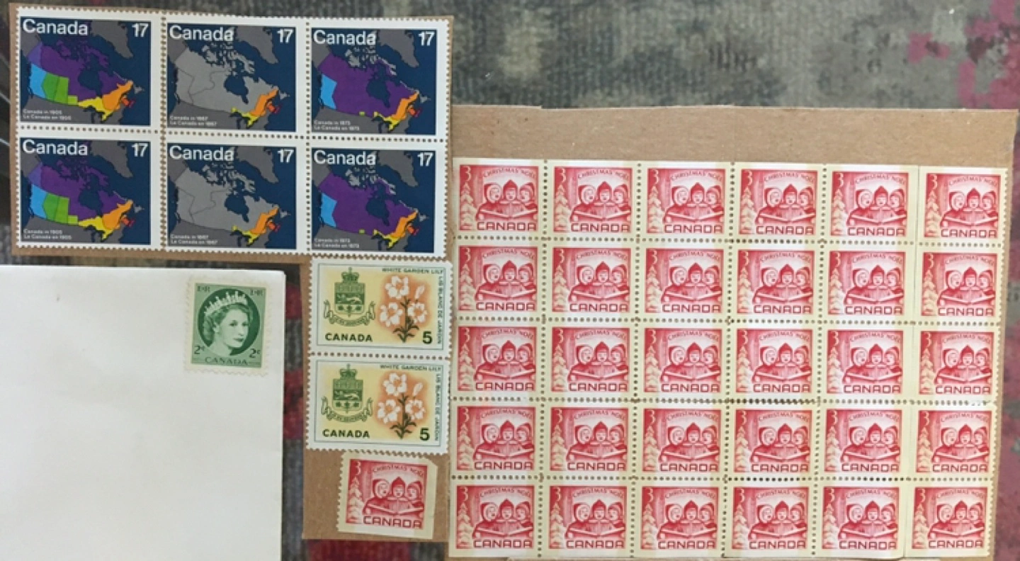 Selling a collection of vintage Canadian stamps! These stamps feature classic designs and are perfect for collectors or anyone interested in Canadian history. Includes stamps with maps, Queen Elizabeth, and Christmas themes.