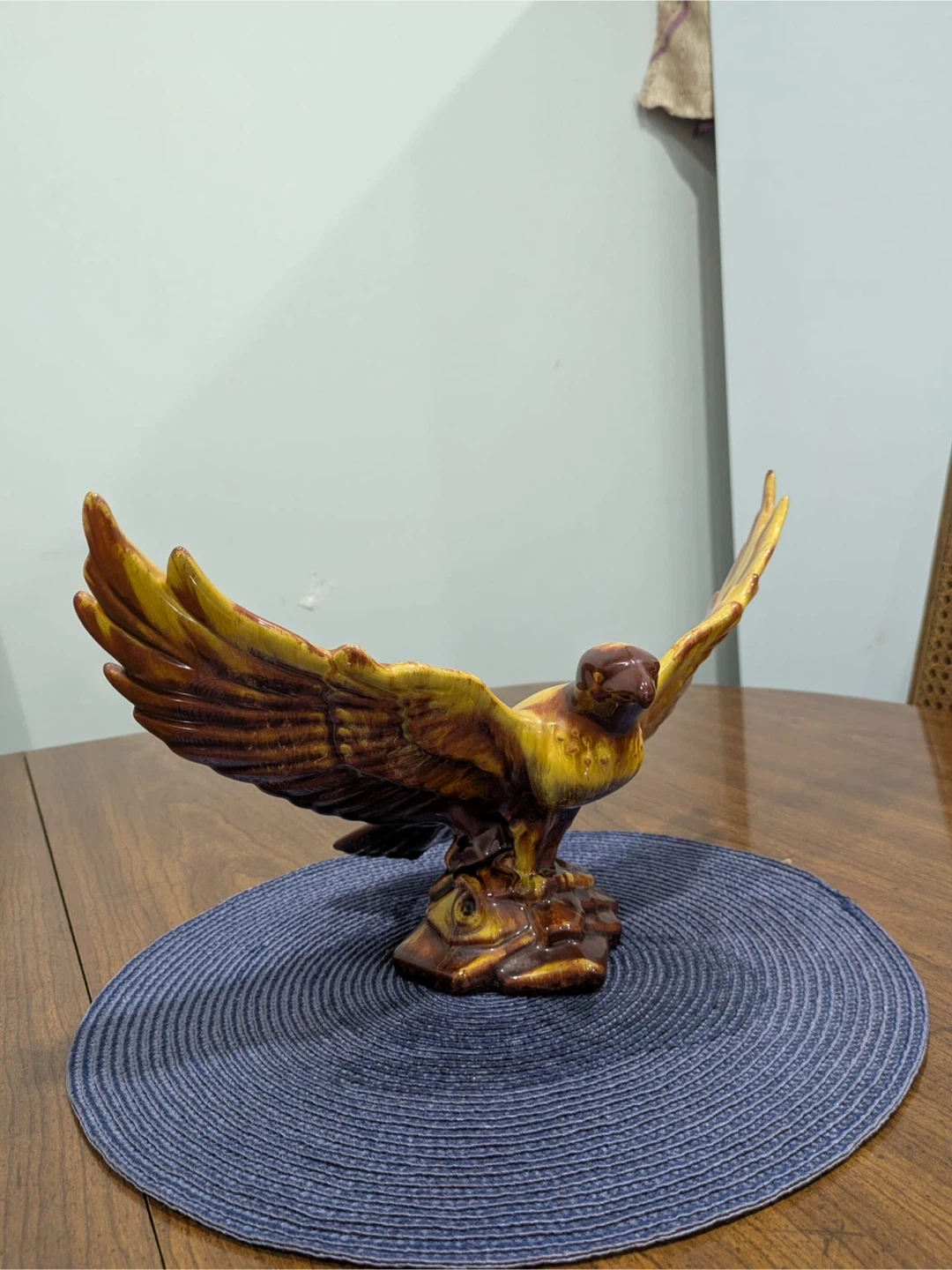 Selling a vintage ceramic eagle figurine! It has a beautiful brown and yellow glaze. It would look great as a decorative piece in any room