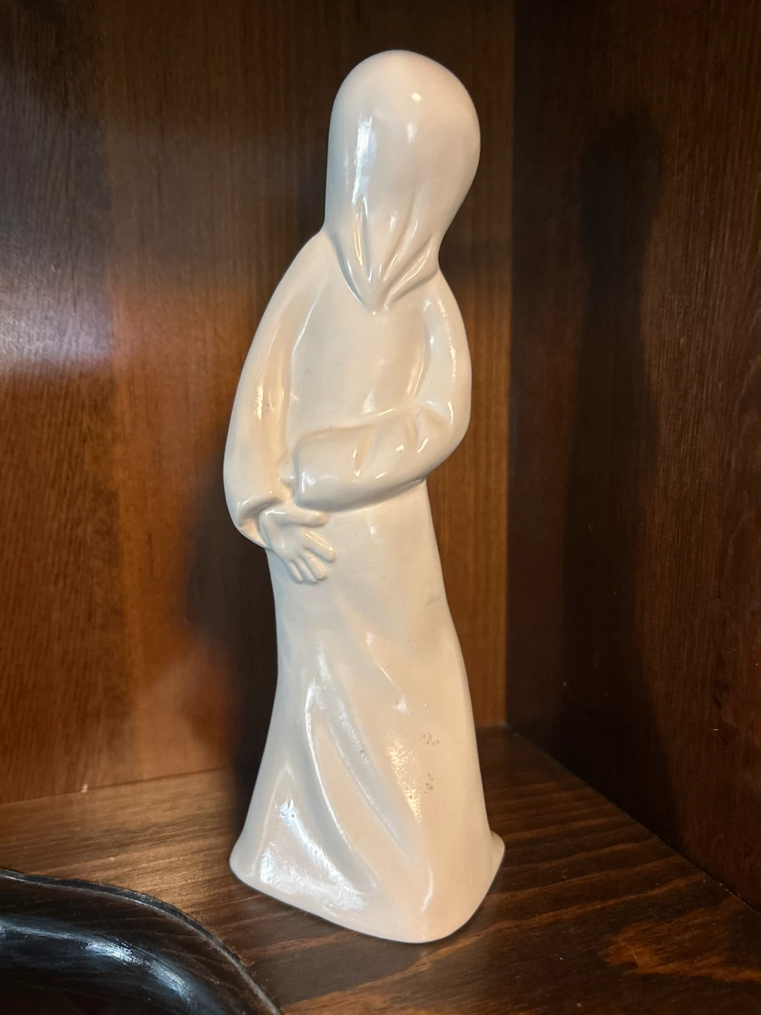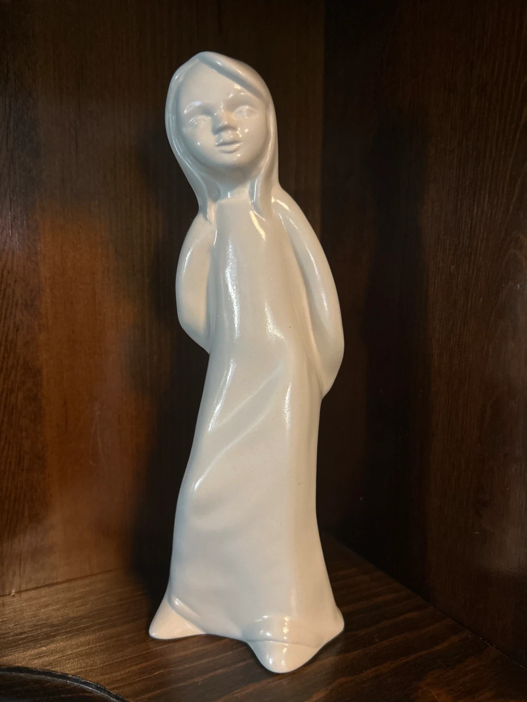 A lovely vintage ceramic figurine of a girl. It's in great shape and would look perfect on a shelf or mantle! A charming piece to add to your collection or as a sweet decorative accent in your home