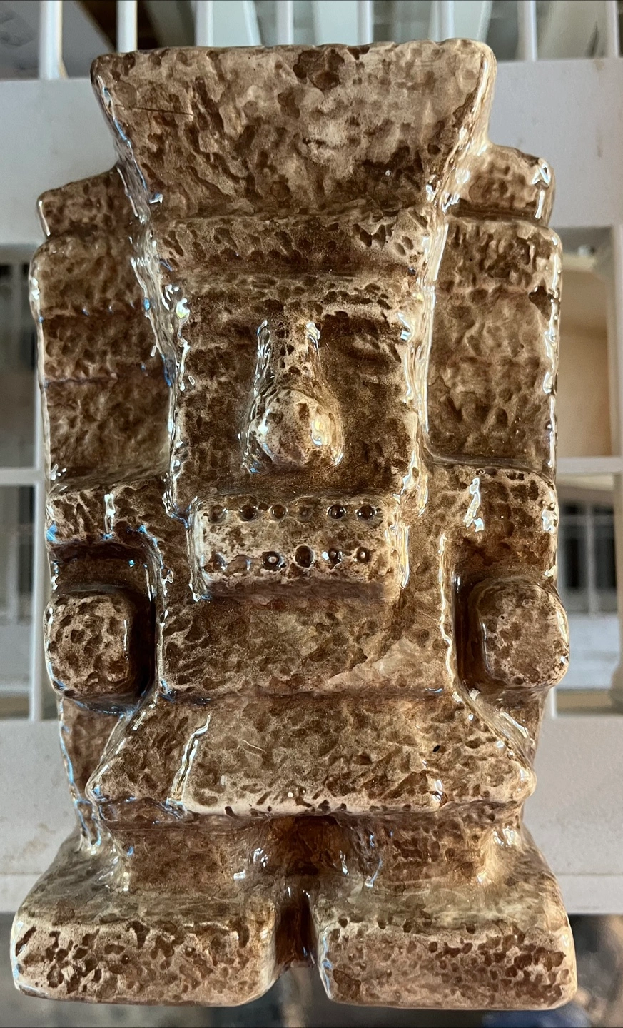 Unique vintage ceramic tiki mug. Brown and beige colours. Stone-like texture. Shows some wear. Great for collectors.