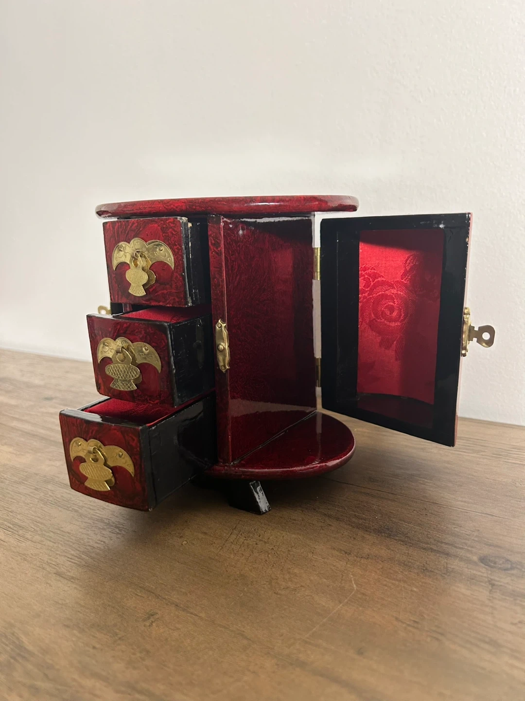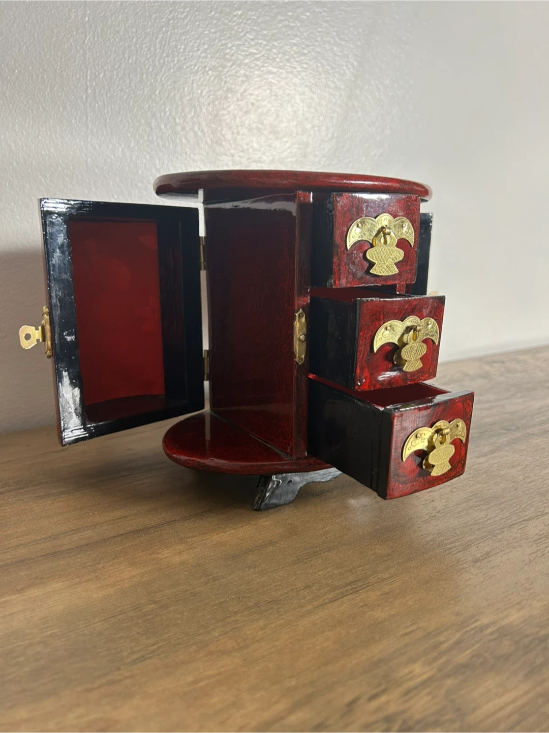 A stunning lacquered rosewood mini cabinet, perfect for jewelry, trinkets, or as a decorative piece. Details: • Type: Vintage Chinese Jewelry Box / Mini Cabinet • Dimensions: 6.5” tall • Material: Lacquered rosewood with rich vintage finish • Condition: Excellent overall, with a minor crack on the back (barely noticeable, does not affect functionality) Price: $60. Cash or e-transfer on the spot is accepted. Pick up in NDG.
