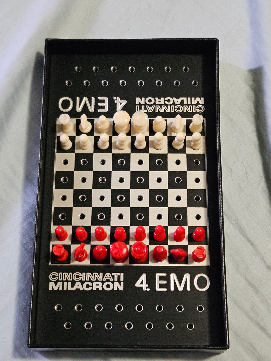 Show allVintage travel chess set. Complete with all pieces. Compact design, perfect for travel. Black case... cash preferred, no holds, must pick up, no price negotiation at the door