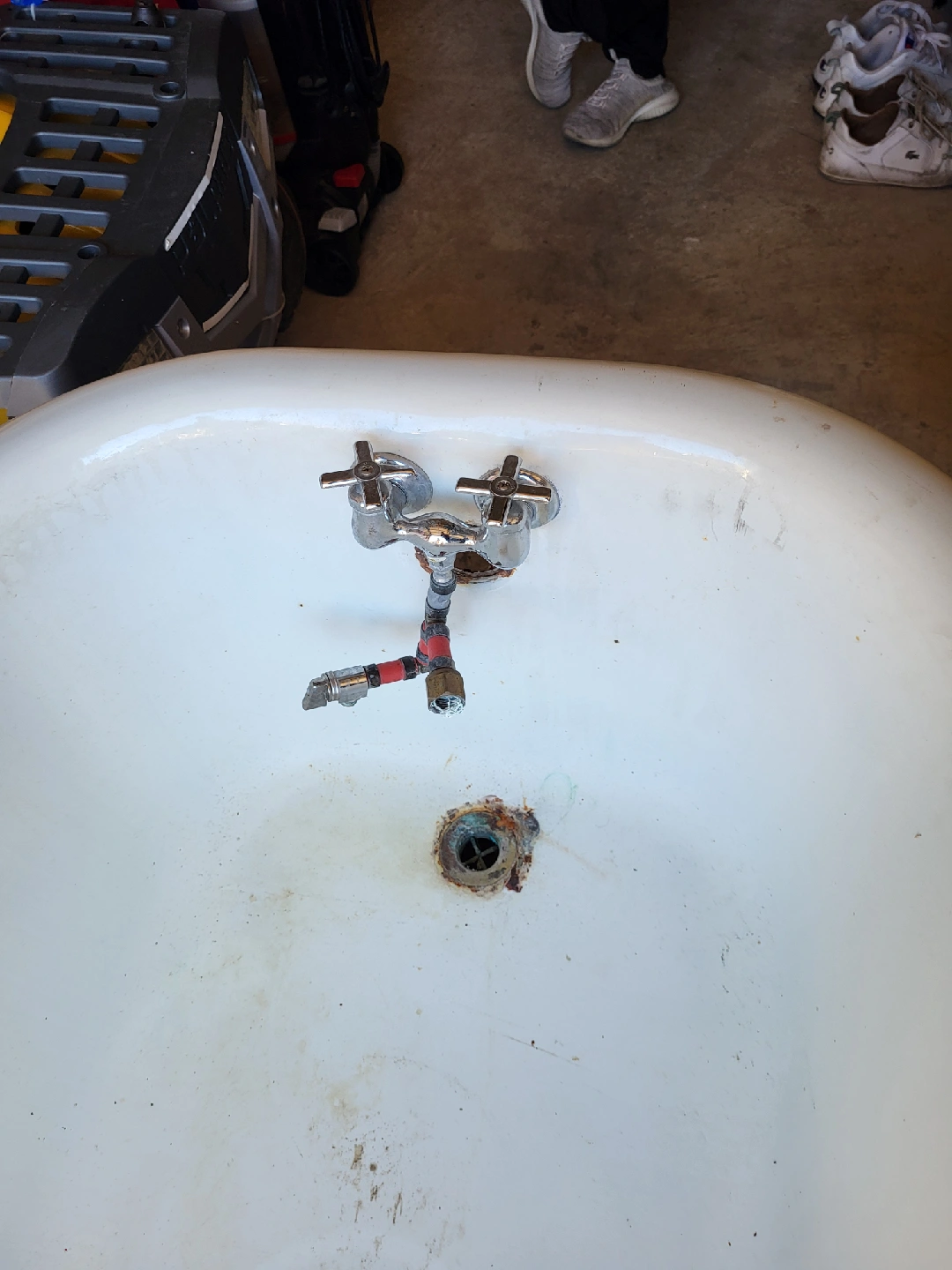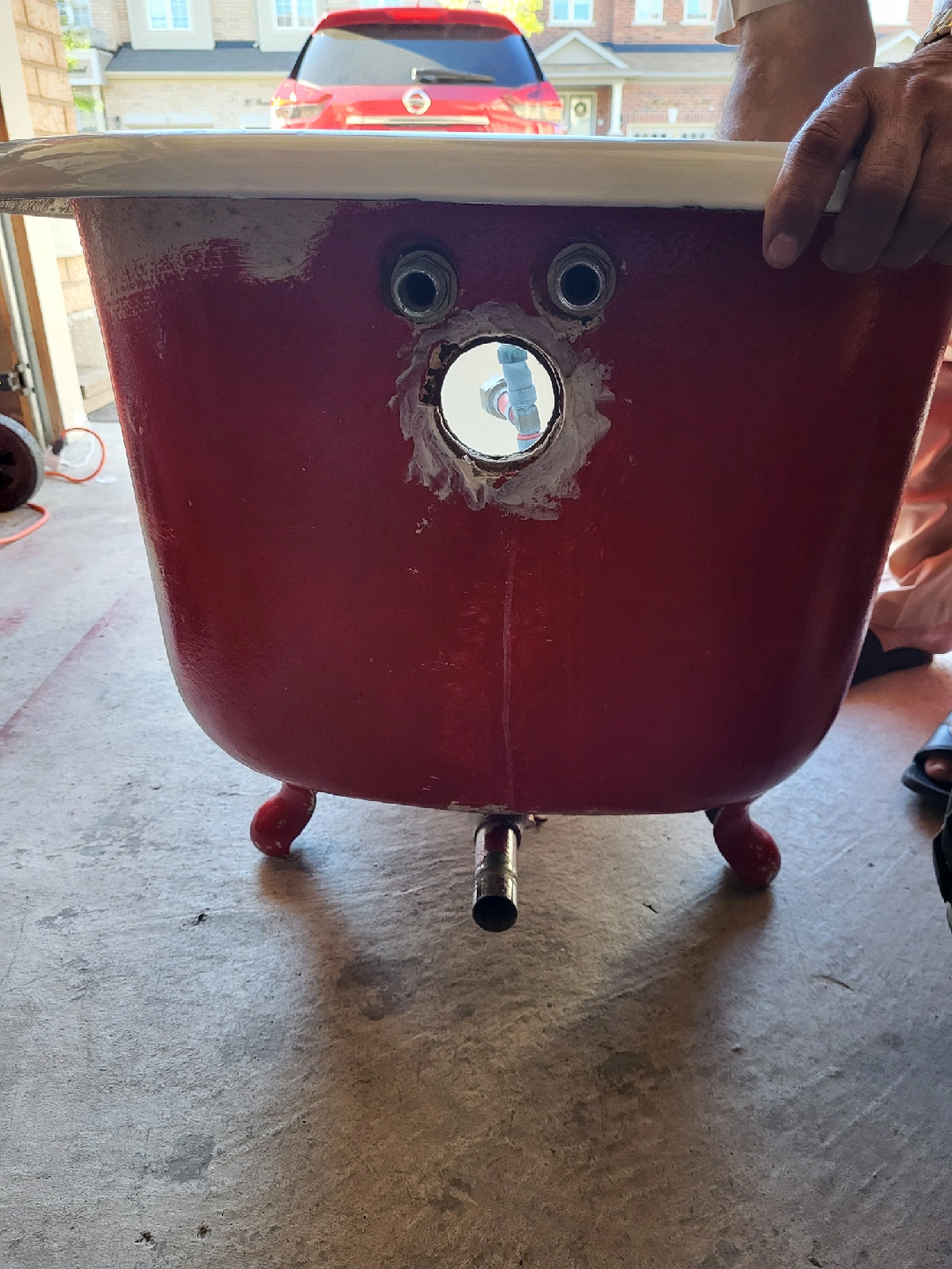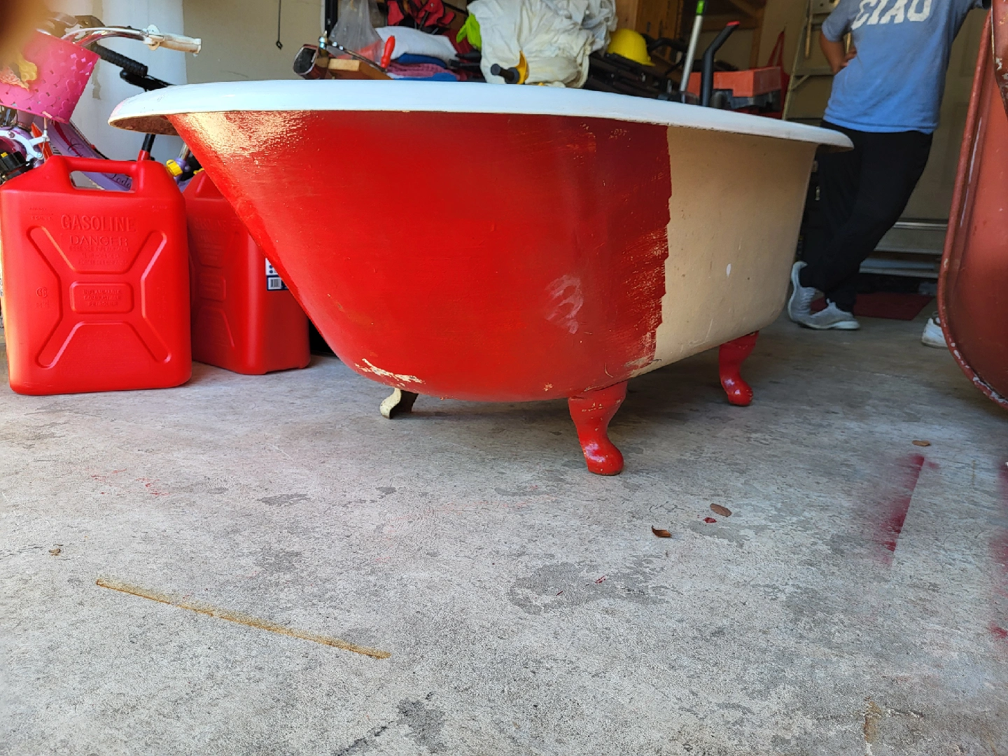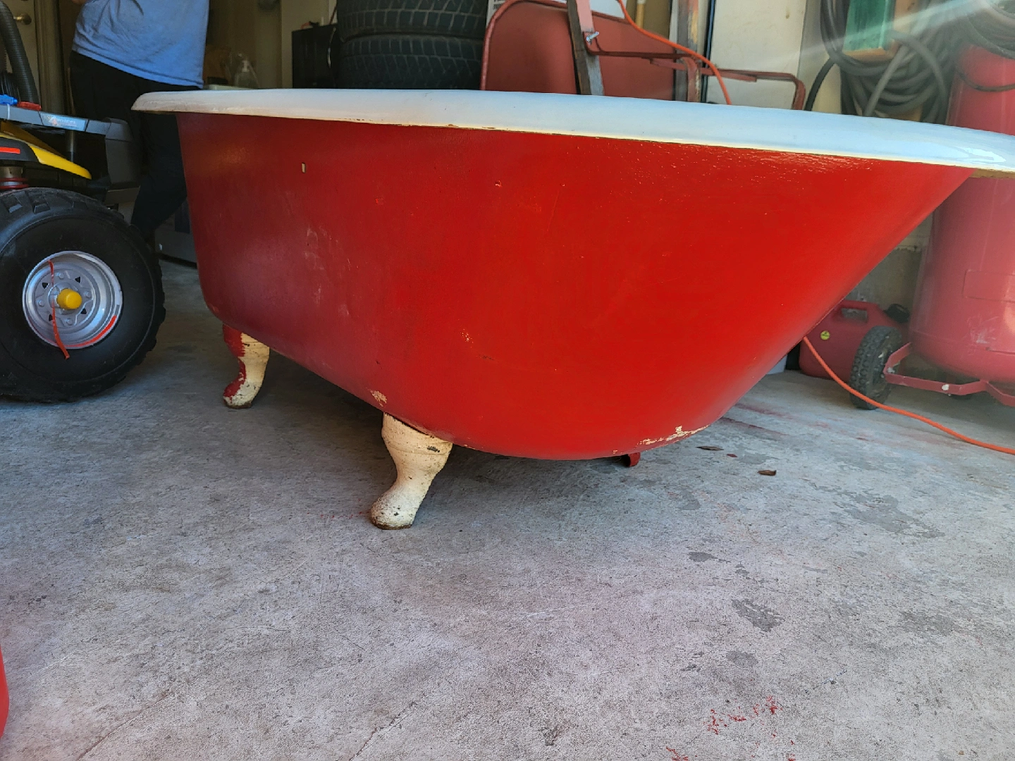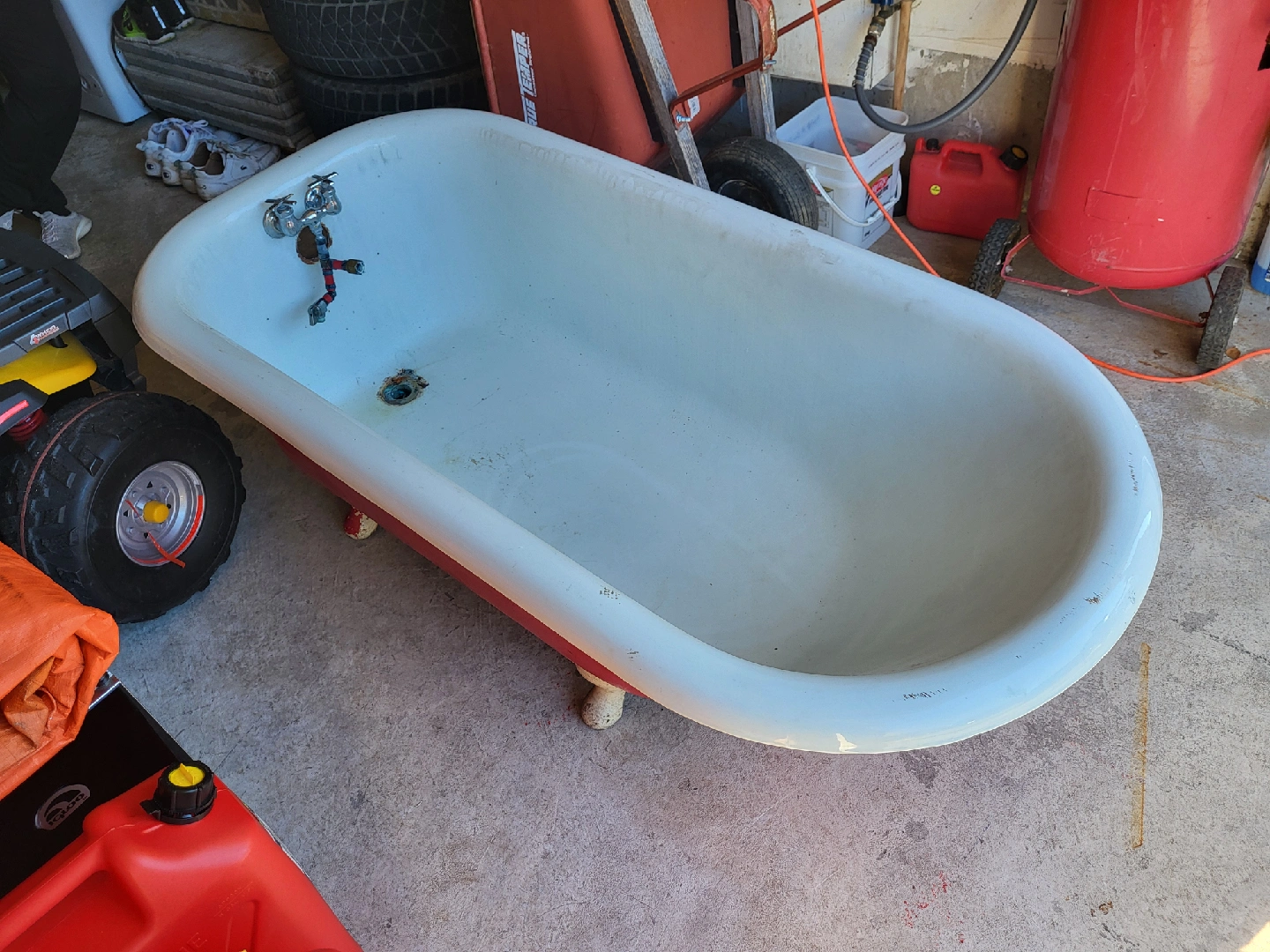 Vintage Clawfoot Bathtub - Red & White