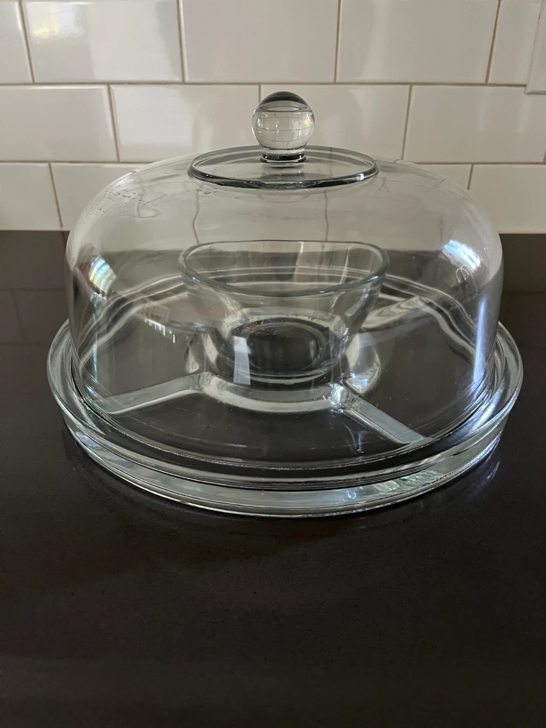 Vintage Clear Glass Reversible Covered Cake stand Vegetable Tray