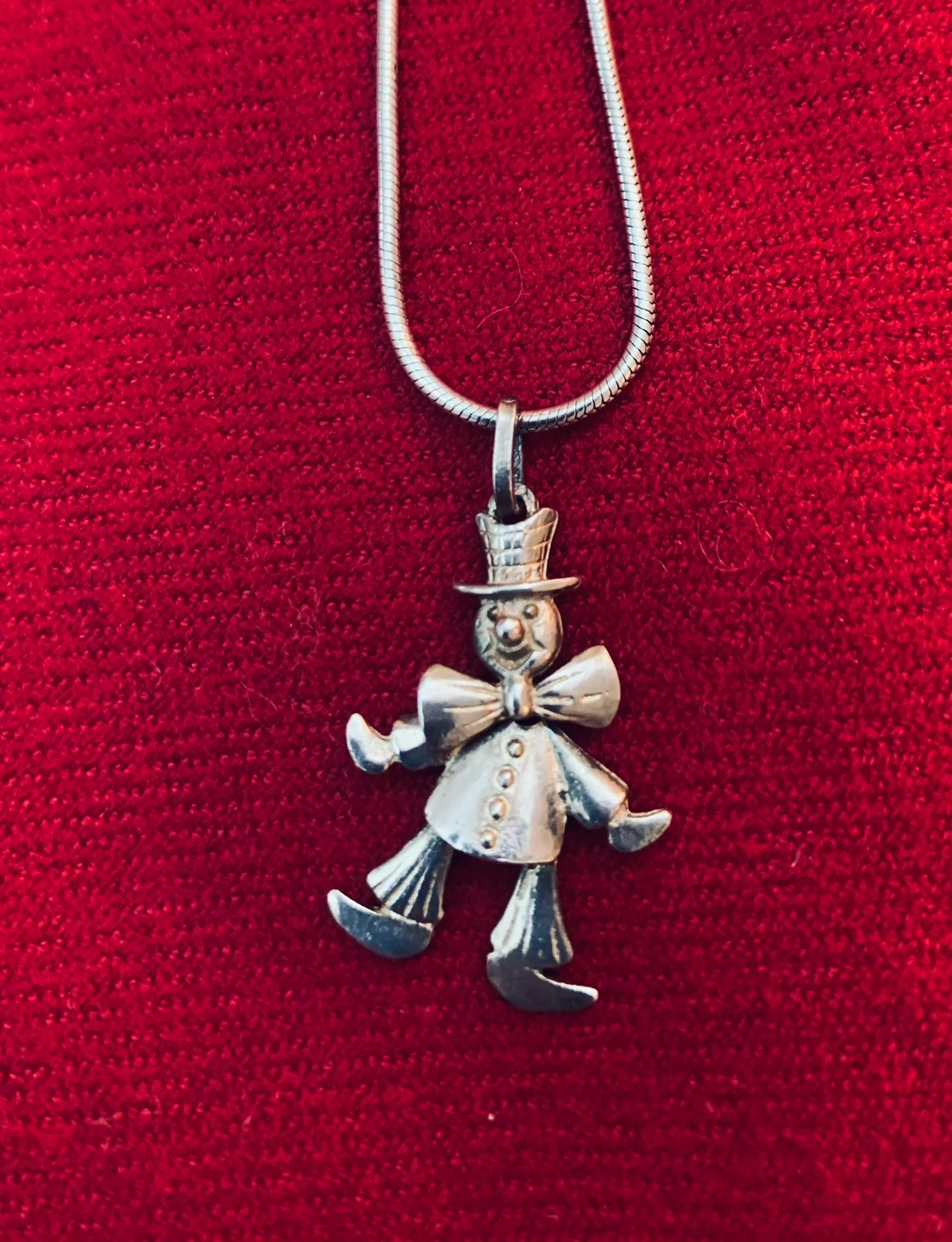 Cute silver (925) vintage clown pendant necklace! The chain is approximately 16 inches long. It has great detail and movable parts. In excellent condition.