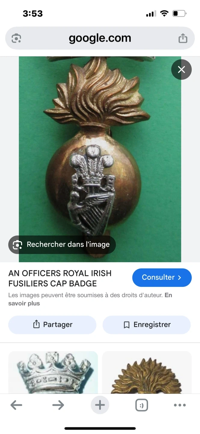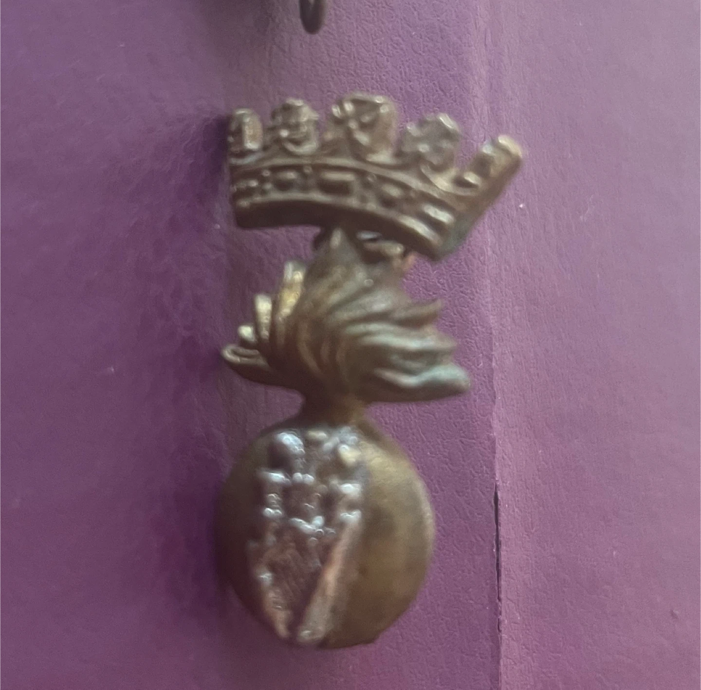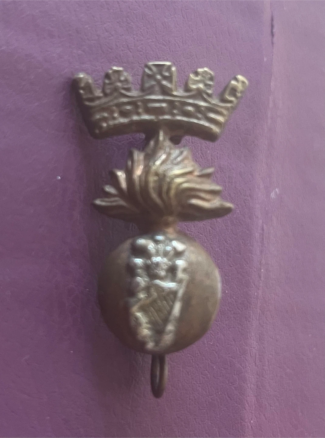 Selling a pair of vintage brooch pins. They feature a crown above a harp design. Both are in good condition for their age and would make a great addition to any collection!