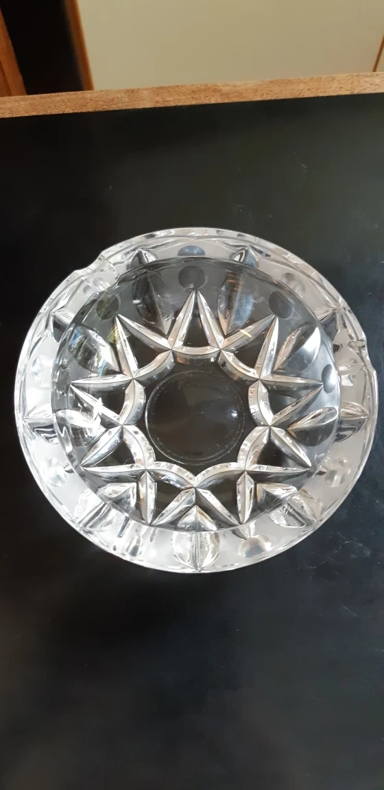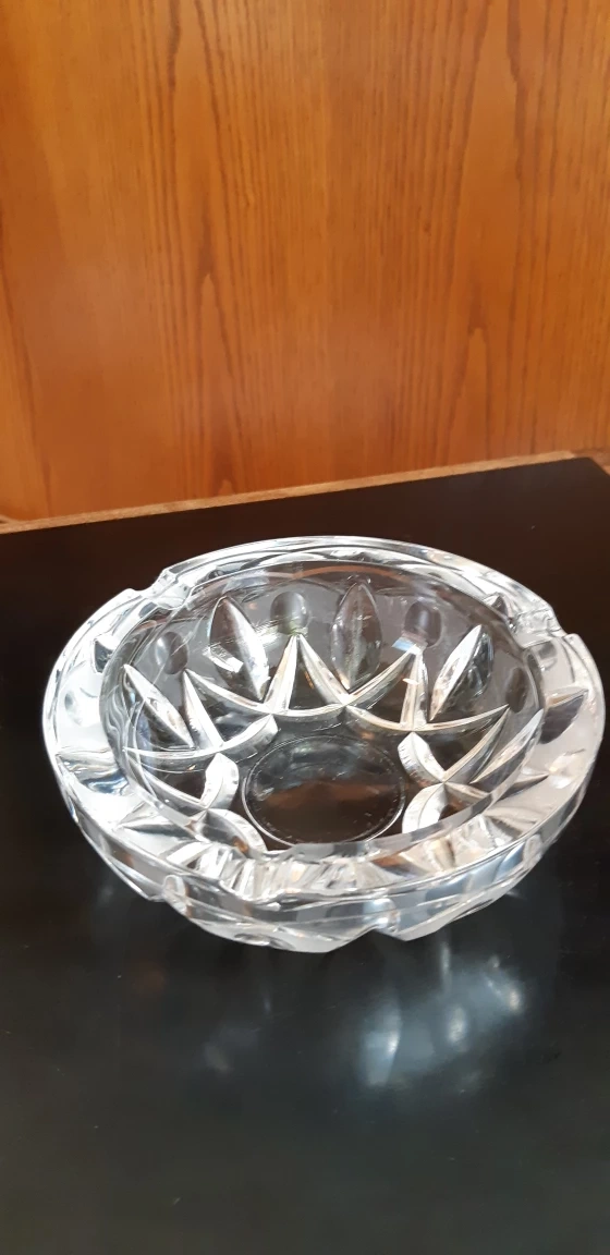 A beautiful cut-crystal ashtray in great condition. It features a starburst design and would look lovely in any decor! Can be used to serve nuts/sweets