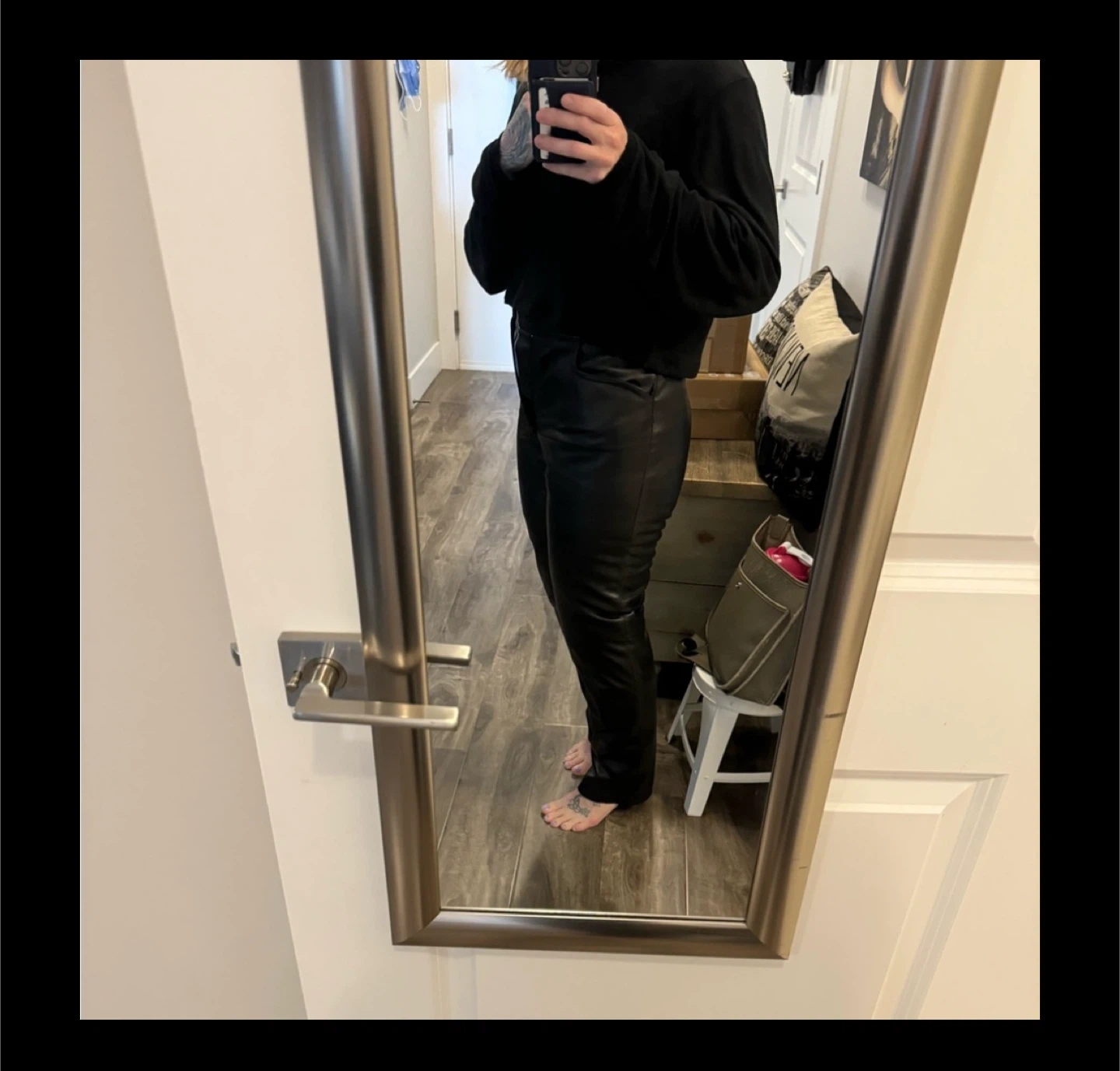 Vintage danier leather boot cut pants - size 8 (fit like 4) Real leather. Lined. High rise. Soft but durable leather.These are vintage so a few scuffs and scratches. Overall 8/10. As you can see i can get them on but not do them up, im 6-8 here. See measurements below: Waist 13” Rise 12” Inseam 28”