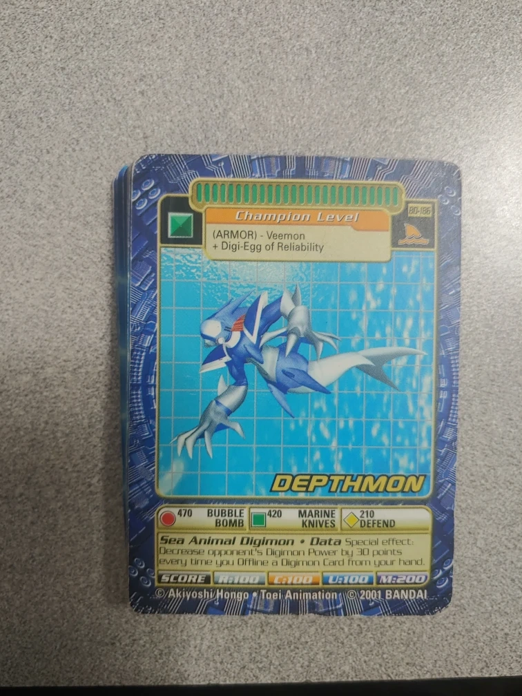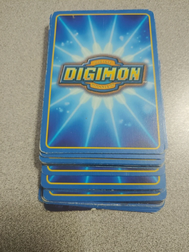 Vintage Digimon Cards 25 Digimon Cards Depthmon BO-186 $5 Red Offensive St-49 $2 Blitz St-52 $2 Nanimon St-15 $2 Blossomon Bo-90 $2 Nohemon BO-203 $12 Otamamon St-24 $2 To Champion St-55 $2 Black Gears Bo-104 $4 Downgrade St-57 $1 Angemon BO-128 $15 Green Offensive St-51 $1 Digivice Red St-59 $2 Gekomon St-27 $1 Kiwimon Bo-85 $1 Jagamon Bo-26 $3 Meat Bo-106 $1 Whamon Bo-58 $1 Metal Attack St-53 $1 Digivice Yellow St-62 $2 Palmon St-09 $2 Gabumon St-05 $2 Veedramon Bo-83 $1 Triceramon St-29 $1 Dokugemon St-19 $2