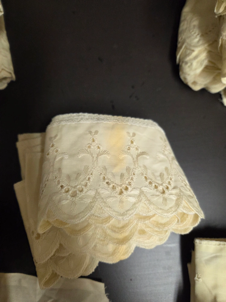 Selling vintage embroidery edges. great for bedding. They have beautiful embroidery and some lace details. Perfect for sewing lovers. Selling all pieces together or by stacks.