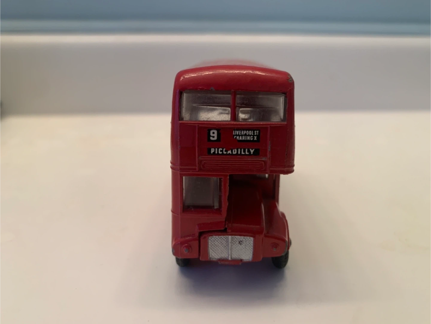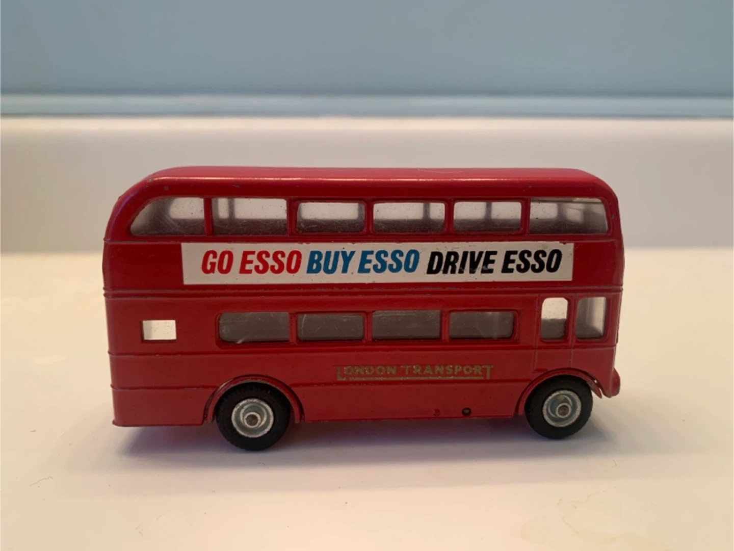 Selling a vintage red Esso London Transport double decker bus. It shows some signs of wear and tear, but it is still a cool piece for collectors!