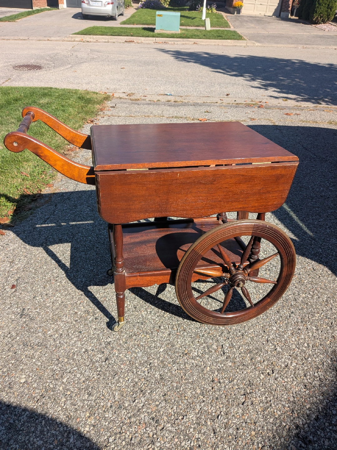 Selling a vintage tea cart from F.W. Woolworth Co. Limited, made in Brazil and sold in Toronto in likely mid 1900s. It's a charming piece with a rich, dark wood finish and classic wheel design. Perfect for adding a touch of retro elegance to your home! Pre loved, smoke and pet free, good working condition. Open to offers.
