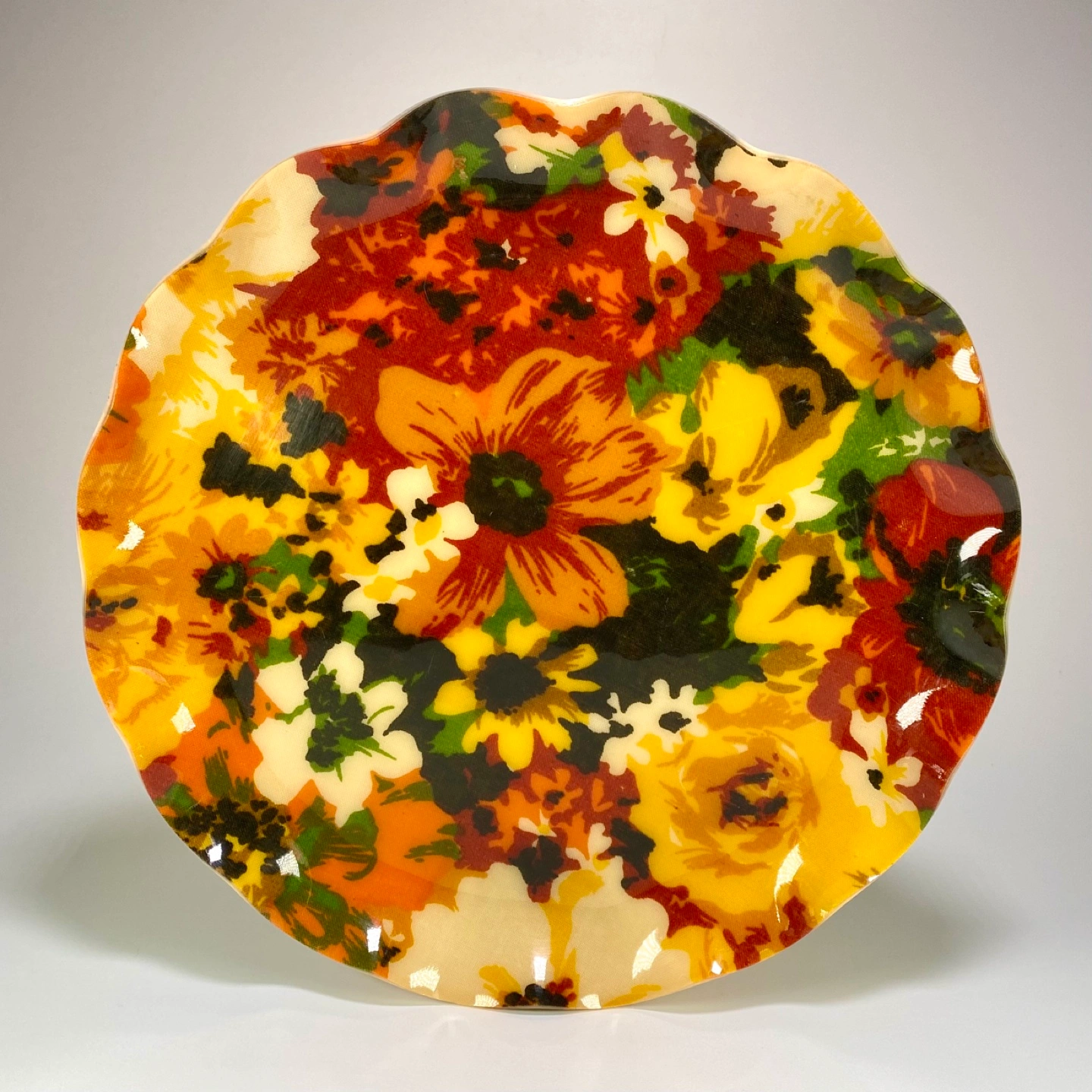 FAB floral ruffled-edge serving tray. 13.5โd ๐ฅ$20 โ Yes, it is available ๐ Pick up near Bloor & Ossington ๐ Downtown delivery extra ๐ฆ Ask about shipping