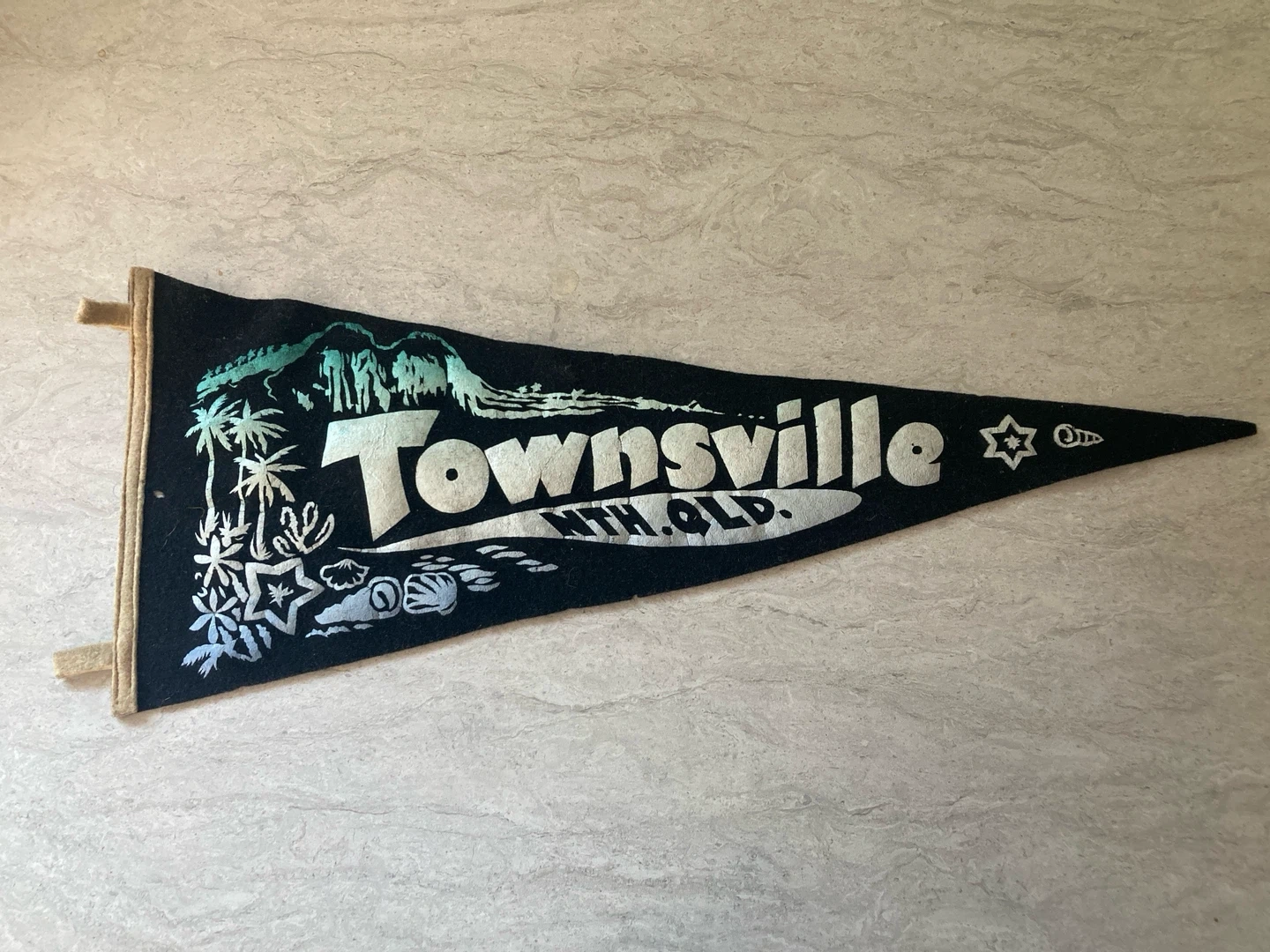 vintage felt pennant from Townsville, North Queensland, Australia. 17’ long $20 cdn Pick up in Royal Oak Saanich