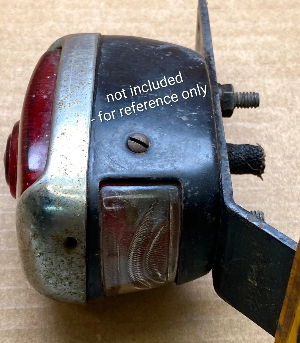 vintage STOPRAY STIMSONITE red tail/stop light lens with its original cast metal mounting bezel. The lens reads: “STOPRAY STIMSONITE – GUIDE NO. ST-5065 – SAE-STDB-67 – MADE IN U.S.A.” Approx. size: 4.5” x 3” Lens intact, light surface wear, minor edge stress line (see photos). Bezel has authentic patina with age. 📸 ***the last photo is a reference photo shown for context only: the image depicts the original metal housing that the STOPRAY STIMSONITE lens would have been mounted in. The complete unit functioned as a combination tail, stop, and license plate light on vintage trucks and utility vehicles from the 1940s–50s. My listing is for the red lens only, the metal housing back piece shown here is not included but is pictured to illustrate how the lens was originally used. Perfect for: Classic GM truck restorations (Chevy, GMC, Buick, Oldsmobile) Hot rods, rat rods, or vintage décor lighting projects Authentic mid-century automotive display