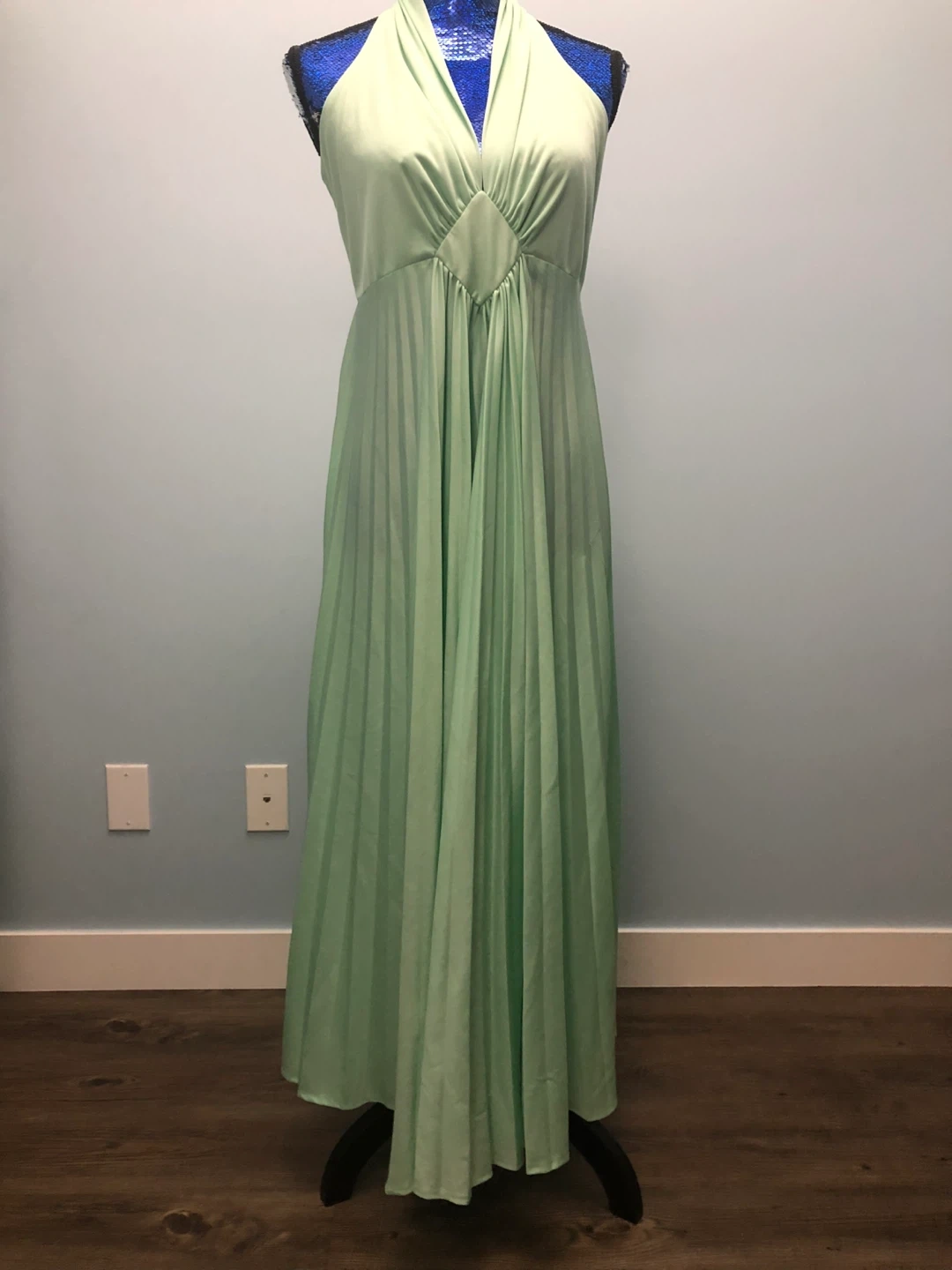 Selling a lovely vintage green halter dress. It features a pleated skirt and a flattering halter neckline. Perfect for a special occasions. Pick-up Okotoks.