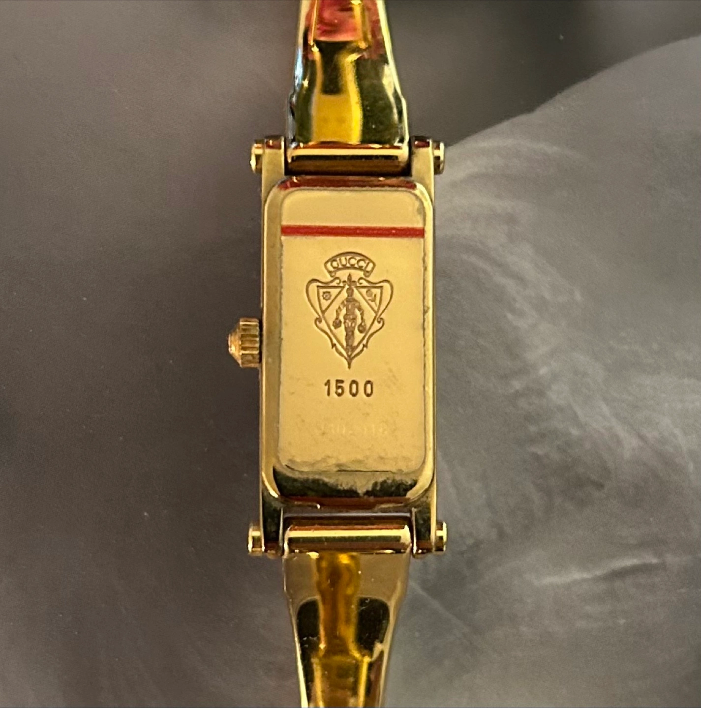 ✨ Vintage Gucci 1500L Women’s Watch – Unworn, Gold-Plated, 1990s Swiss Quartz ✨ Elevate your accessory game with this timeless and elegant vintage Gucci 1500L women’s watch – a true gem from the 1990s. Known for its sleek, minimalist design and refined Art Deco influence, this model is highly sought after by collectors and fashion enthusiasts alike. 🕰️ Item Details: *Brand: Gucci (Made in Switzerland) *Model: 1500 Series *Era: 1990s Vintage *Condition: Brand new, never worn (no scratches, pristine face and bracelet) *Material: Gold-plated case and bangle-style bracelet *Movement: Swiss quartz (currently needs a new battery) *Clasp: Gucci signature horsebit design *Original Packaging: Not included 💡 Notes: This watch has never been worn and has been kept in storage. It currently requires a battery replacement to function. Aside from that, it is in immaculate condition, ideal for daily wear or as a standout vintage piece in any luxury collection. 💎 Why You’ll Love It: The Gucci 1500L blends Italian luxury with Swiss precision. Its slim rectangular design and subtle gold finish make it a versatile and iconic accessory perfect for both everyday elegance and formal occasions. *Serious Buyers Only Please*