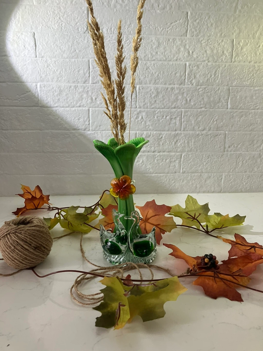 Vintage Murano Style Hand-Blown Bud Vase with Applied Flower. 7.5" Tall