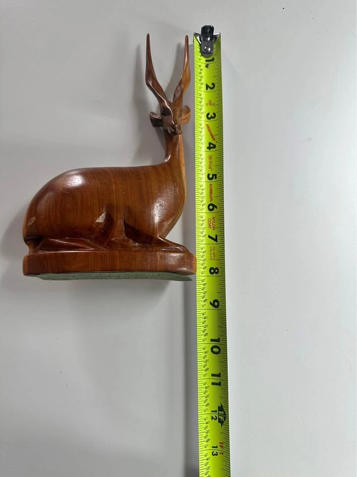 Channel the spirit of the savannah—without the airfare. This elegant hand-carved wooden antelope stands 11.5” tall and brings a calm, regal energy to any shelf or mantle. Sculpted from rich-toned hardwood (possibly teak or mahogany), it’s part art piece, part vintage collector’s flex. • Likely made in East or Southern Africa • Smooth, minimalist mid-century style • Solid wood with striking spiral horns • Perfect for boho, modern, or earth-tone interiors Whether you’re building your safari-themed lounge or just want a deer that won’t bolt when you talk about your feelings—this one’s got you. $5 OBO