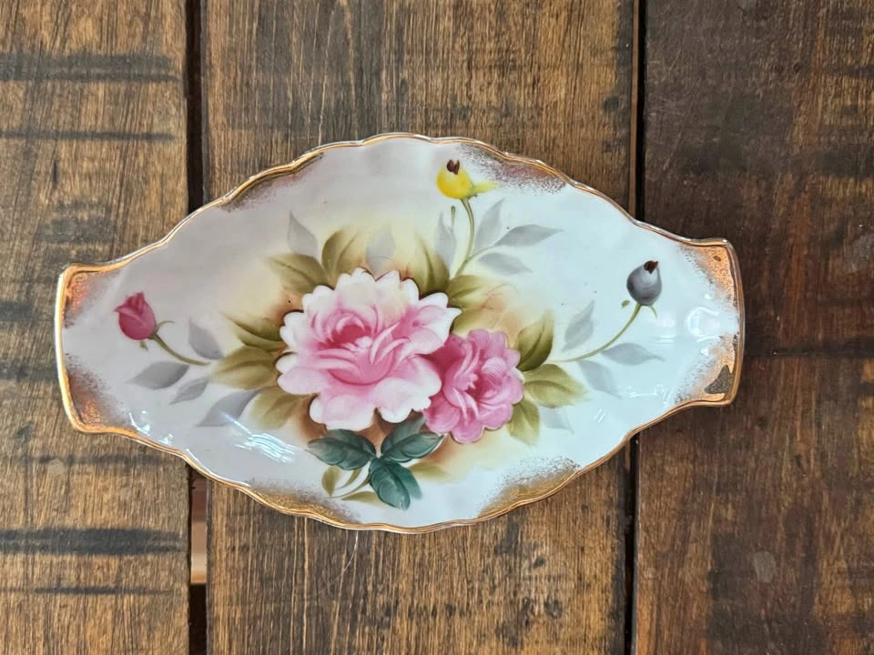 Vintage Floral and Gilding dish, Hand Painted, Made in Japan, Wild Rose Pattern, KF 22241, 1950s No chips or cracks Pick up in Brighton