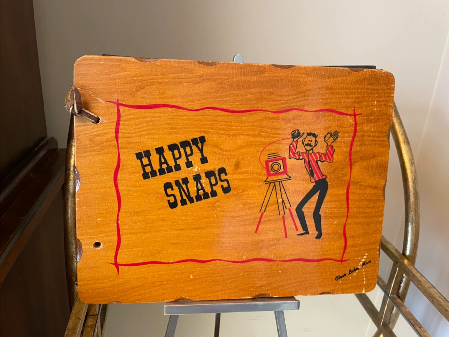 Selling a vintage photo album with a charming "Happy Snaps" design on the cover! It's a unique piece to store your cherished memories. The album features black pages, perfect for showcasing your photos in a classic style. Pages are in very vintage condition, but the wooded front and back are in great shape. One leather loop is missing . Easy to refurbish. Accepting etransfer for guaranteed hold and FCFS for cash transactions.