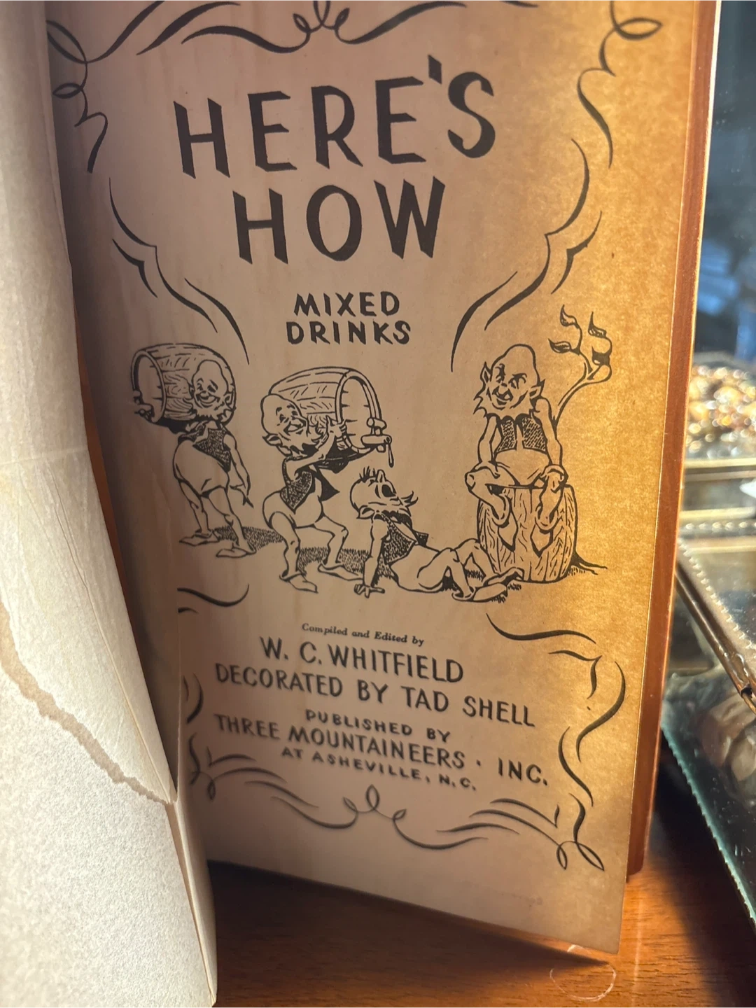 Selling a vintage copy of "Here's How" mixed drinks recipe book. Compiled and edited by W.C. Whitfield and decorated by Tad Shell. Published by Three Mountaineers, Inc. at Asheville, N.C. A unique piece for any cocktail enthusiast or collector! Parkside Drive south of Bloor and keele station area Only the first piece of onion skin is torn , none of the main book pages are damaged