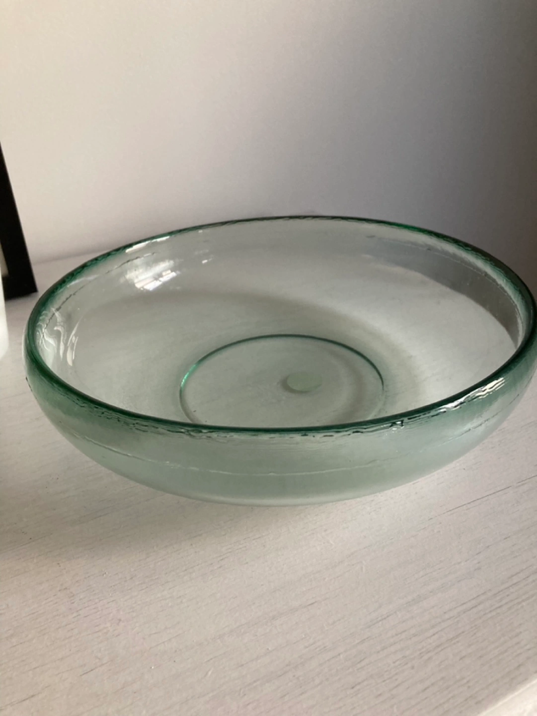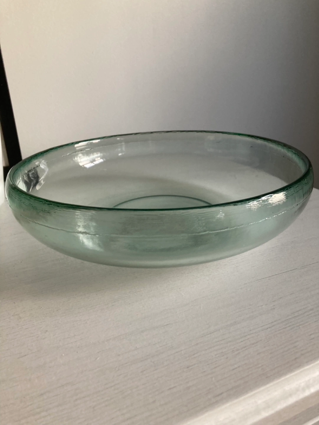 EUC vintage IKEA UK glass bowl. Solid heavy piece from back in the day when their glass pieces were amazing quality. Has a nice green hue to it. 9.5” diameter 2.75” deep This 90s kid used it for floating candles, flowers and/or food storage. SFPF home Kingston road and Dundas street east area, sometimes University and Dundas during the day.