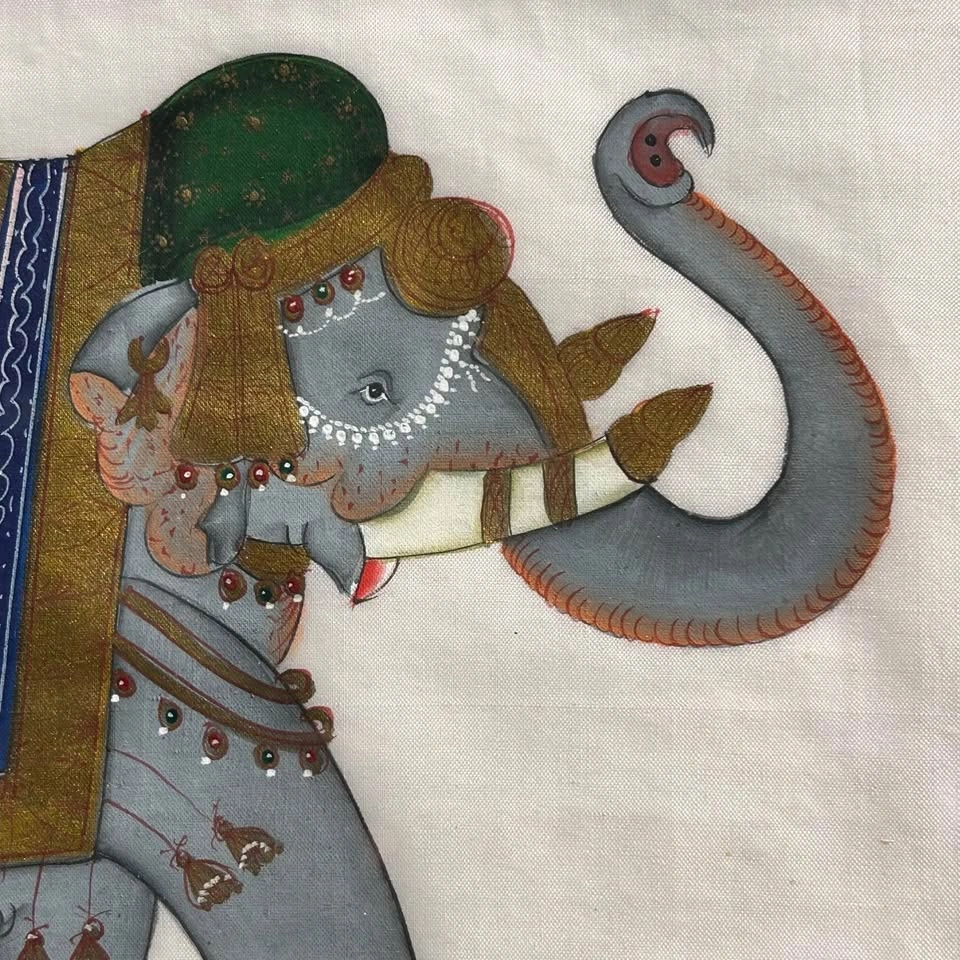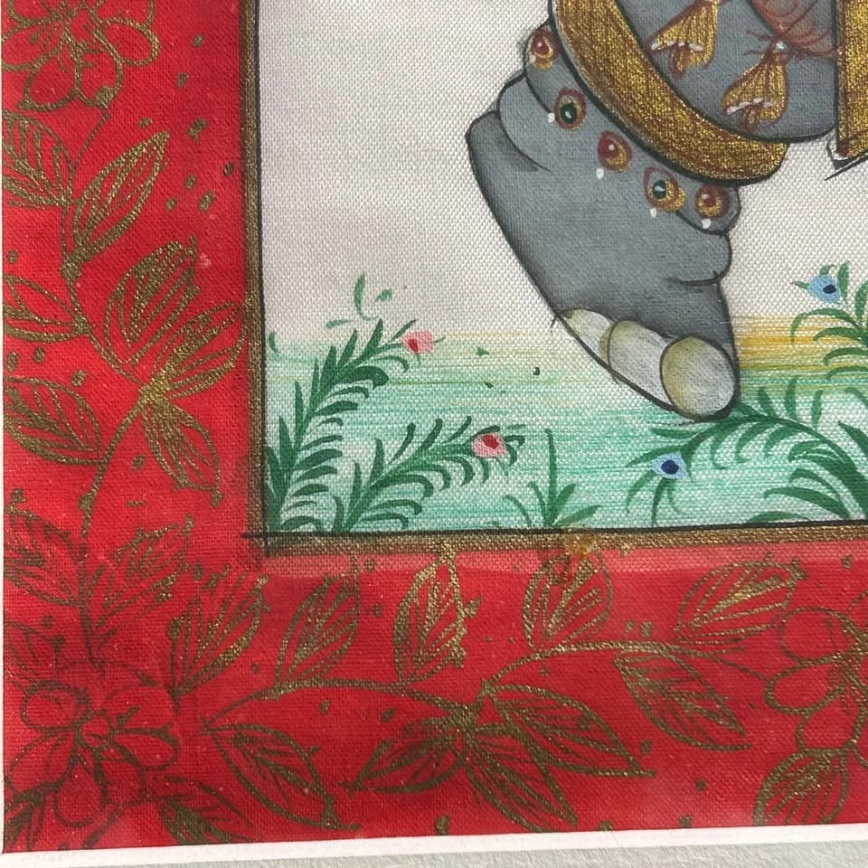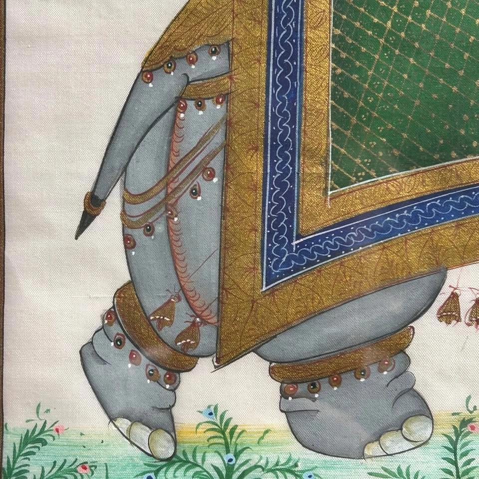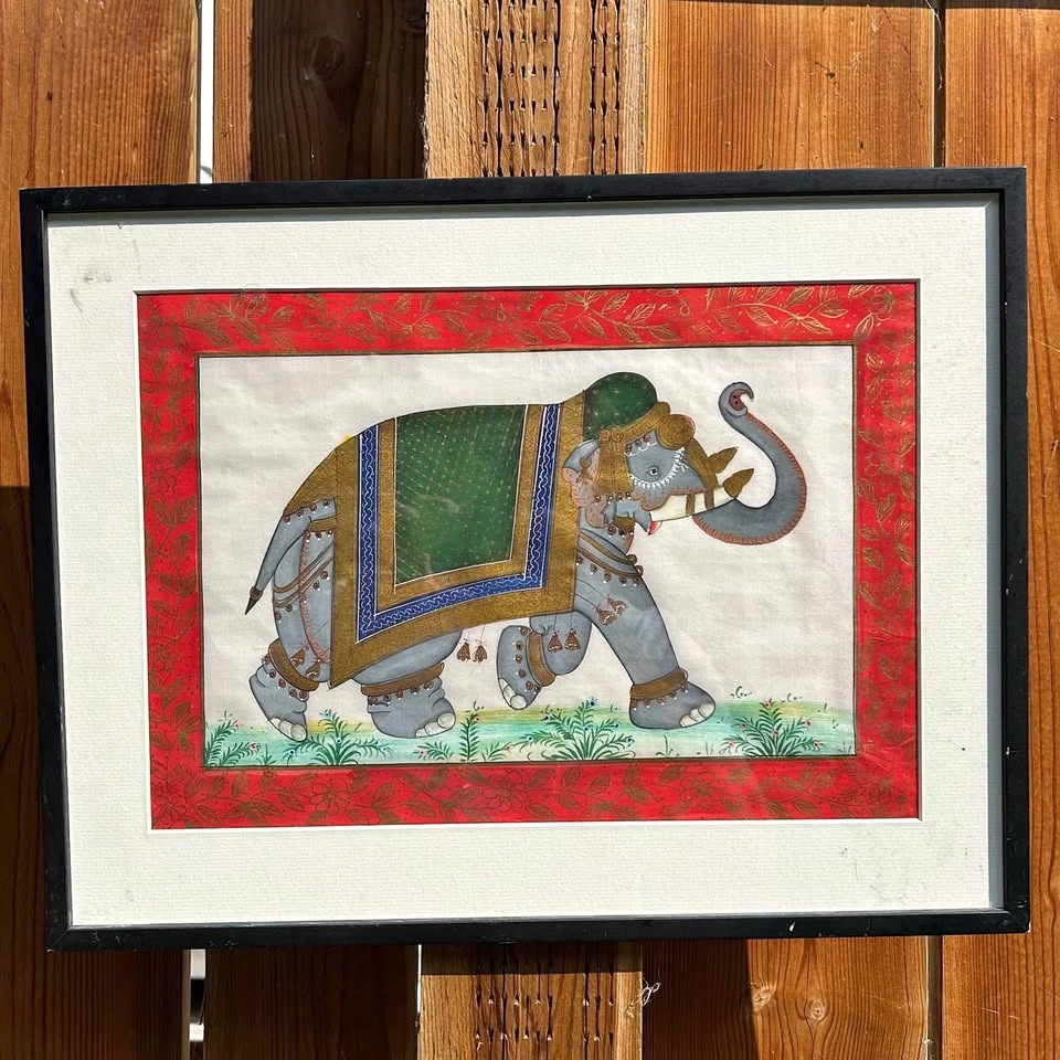 A fine example of traditional Indian miniature painting, this artwork portrays a royal elephant richly decorated with jewelry, ornaments, and ceremonial fabrics. Hand-painted with exquisite detail, the elephant is framed within a red floral border with golden accents, symbolizing prosperity and protection. Miniature paintings have a long history in Indian royal courts, often used to depict scenes of power, devotion, and prestige. The elephant, in particular, is a sacred and cultural icon, representing wisdom, strength, loyalty, and royal dignity. Collectors value these works not only for their artistic charm but also for their deep symbolism and connection to South Asian heritage. This framed piece is ideal for collectors of ethnic art, cultural symbolism, or anyone seeking a striking and meaningful decorative artwork. Pick up: Seton area, Calgary. Payment: e-transfers and cash. See also my other lots. Open to your questions and suggestions. If necessary, I provide additional photos. These are not new things, so please look carefully at the photos and videos. Sizes are submitted on request and also using a tape measure in the photo.