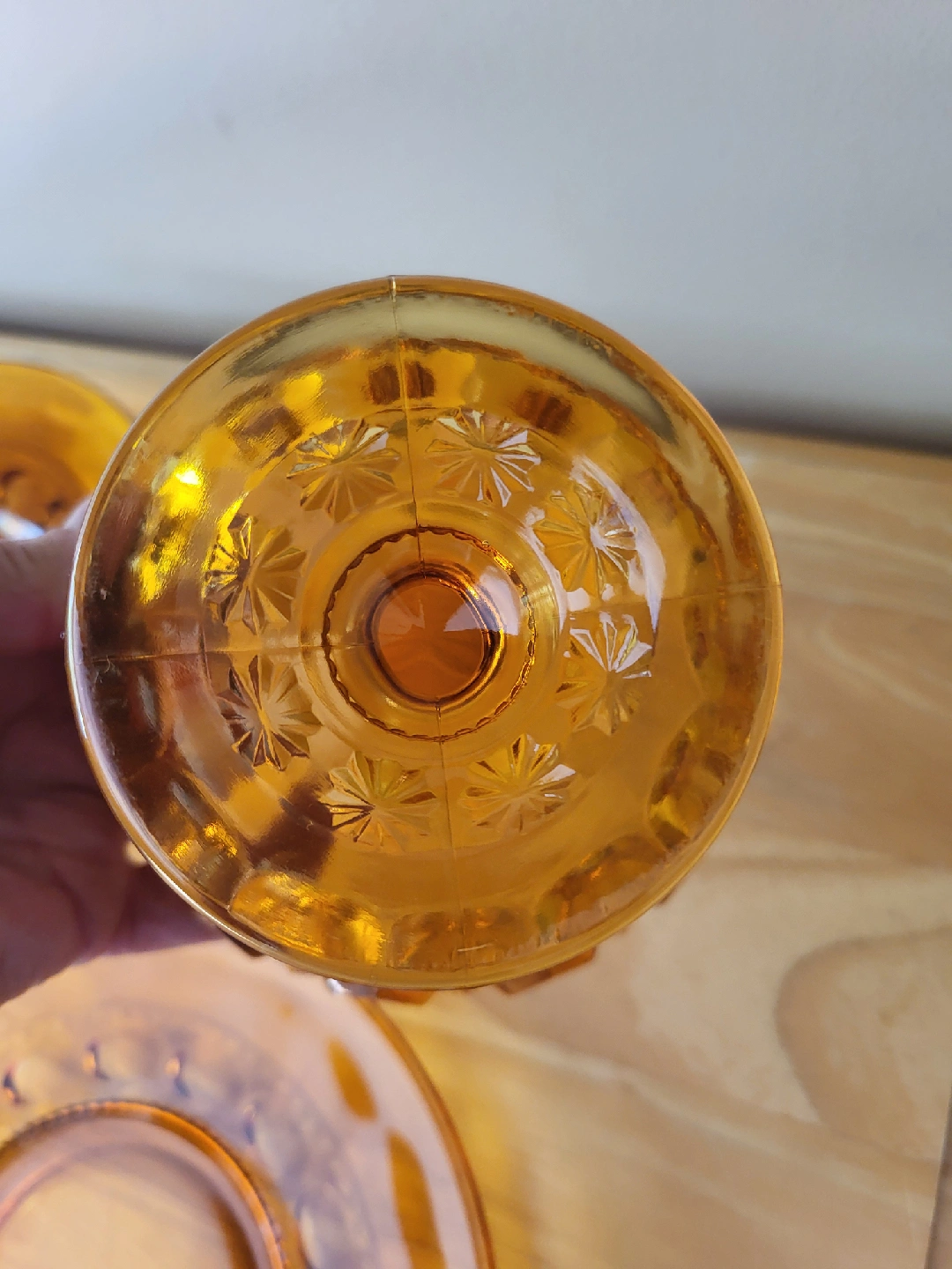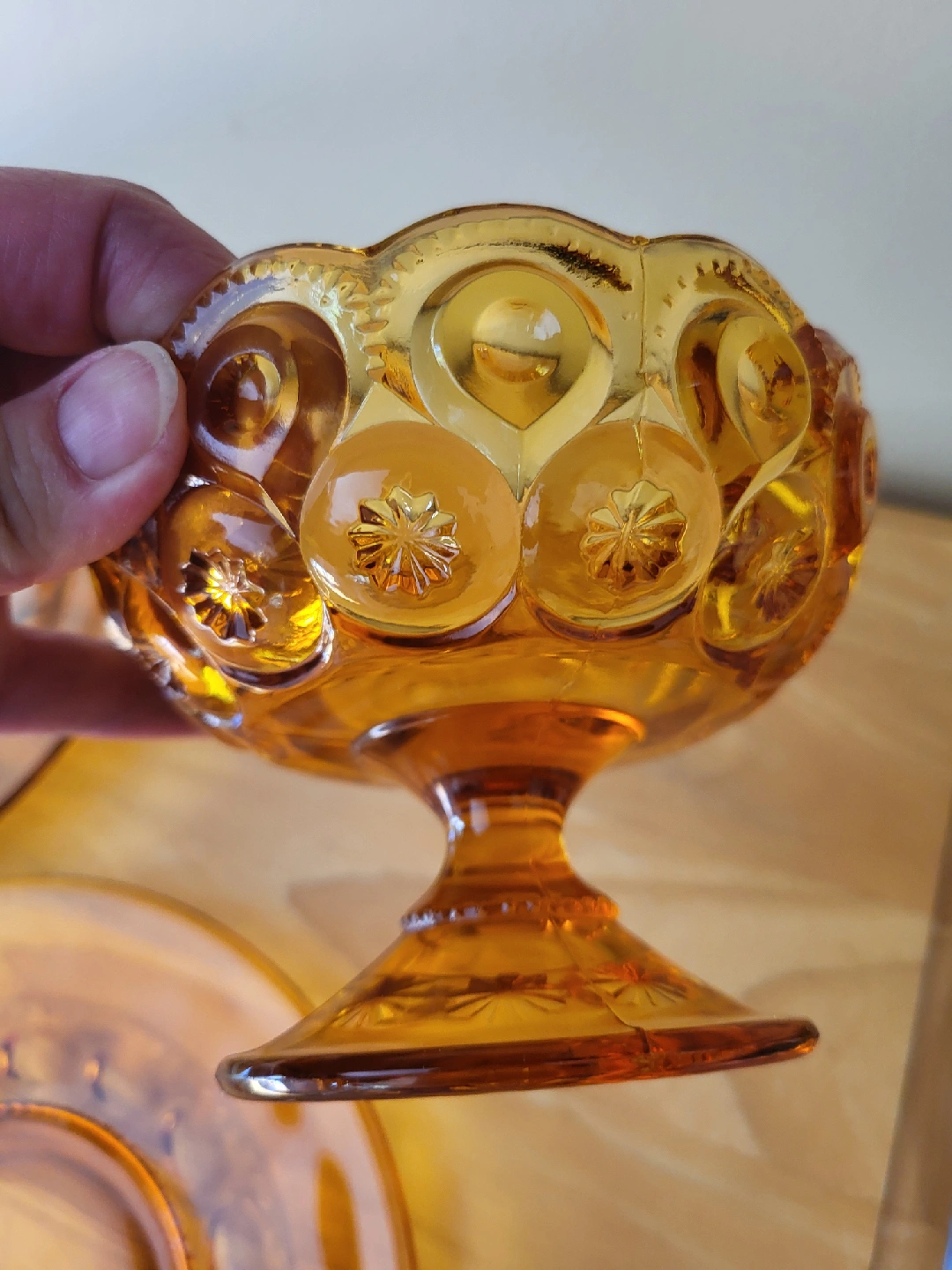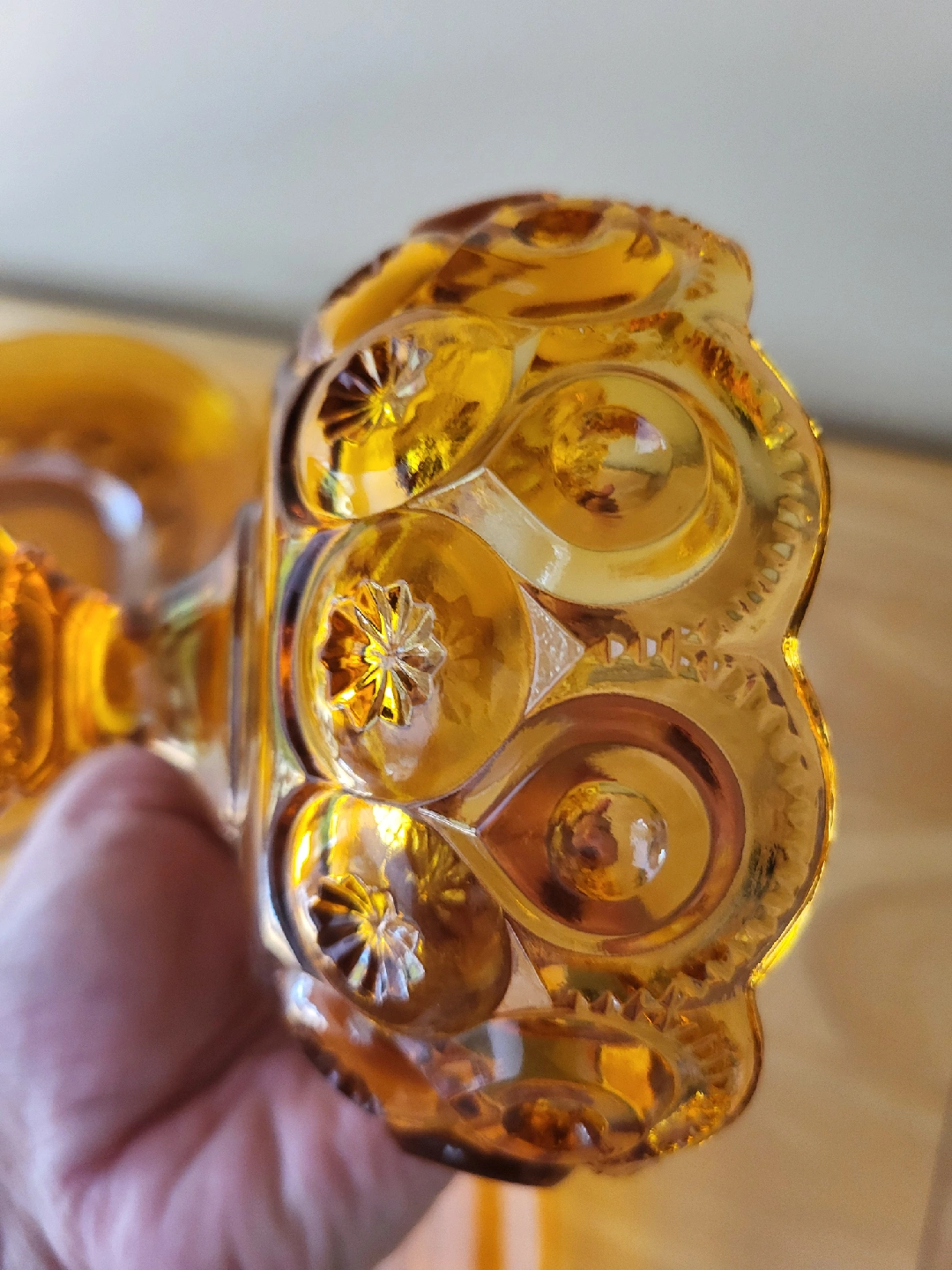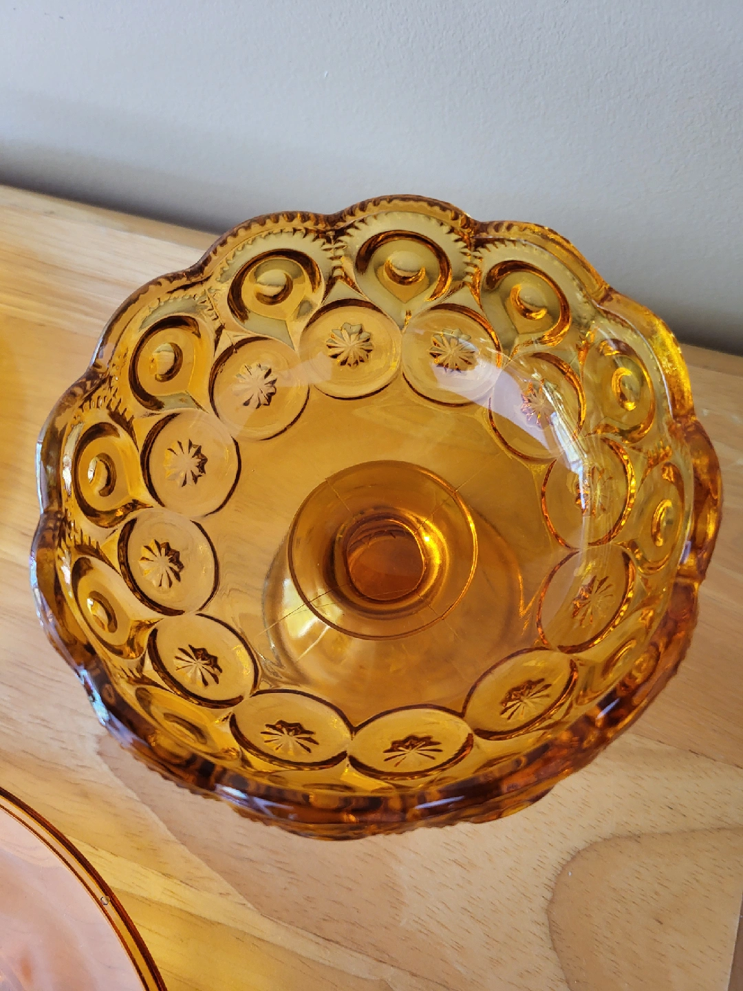 Beautiful vintage Indiana Glass amber bowl with a lovely star and moon pattern. It's in great condition and would be a wonderful addition to any collection or home decor