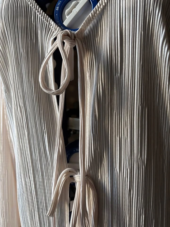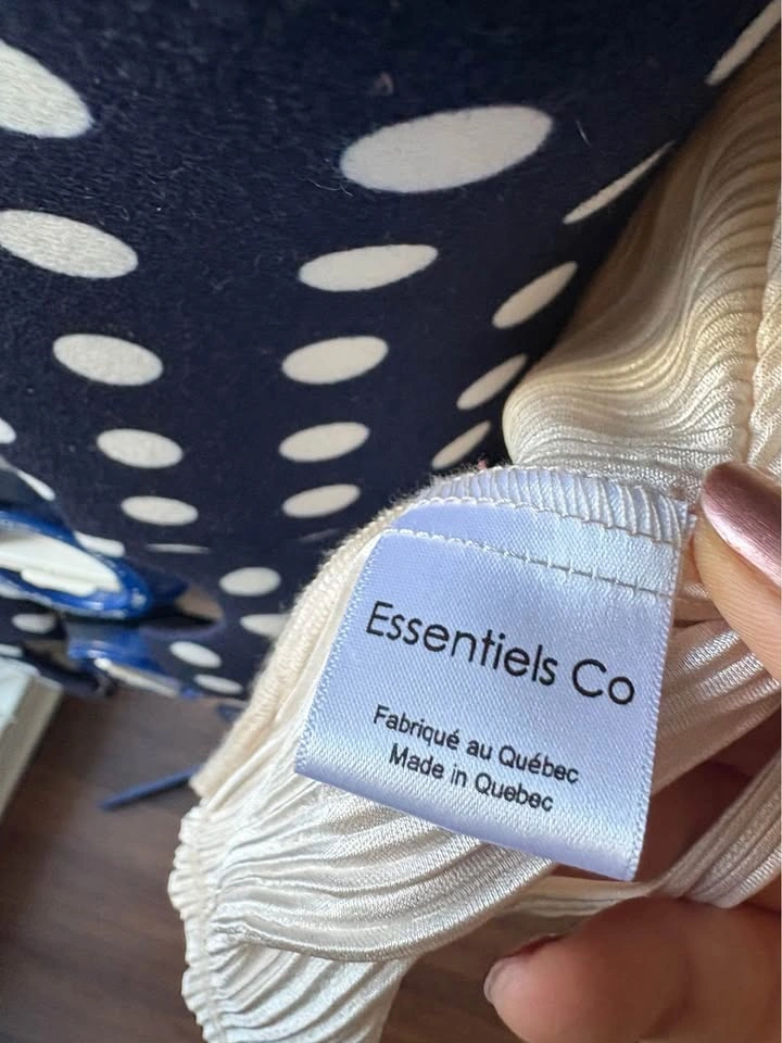 Vintage ivory bell sleeve top with front ties. It’s by a brand called Essentials Co, and made in Quebec. Beautiful ivory fabric that has a subtle shimmer. The sleeves have a soft bell shape, and the top can be worn open or tied. It’s marked as a size S, but it’s meant to be a loose, oversized fit and the fabric is also very stretchy. I’m usually a M and it’s loose on me. Can be dressed up or down, and actually would look really nice over a wedding/formal dress for fancier events. Very lightweight and ethereal. If listing is up, it’s available. Cash only and pickup only near Yonge & Davisville.