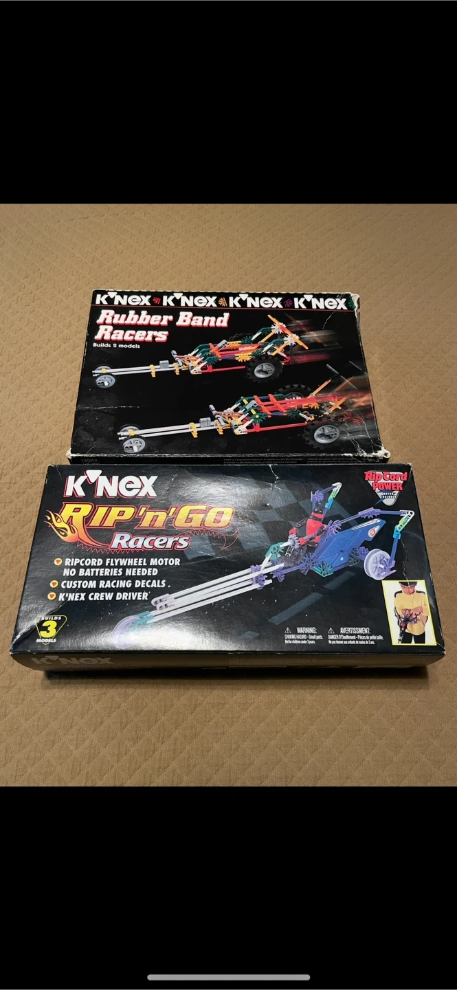 This listing is for two Vintage (mid-90’s) K•NEX building sets: Rip N Go Racers and Rubber Band Racers (car themed sets). Both sets are complete and then some — some pieces are still sealed in the original bags, (extras also included). Building manuals also included. These vintage sets are selling for $40 and above — each! Last photos show some of the recently sold sets on eBay and the like. Take both sets for $40 — OBO. I’m open to reasonable negotiation. Pick up from a smoke free home near Browns Line & Lakeshore Boulevard in Etobicoke (Toronto/Mississauga).